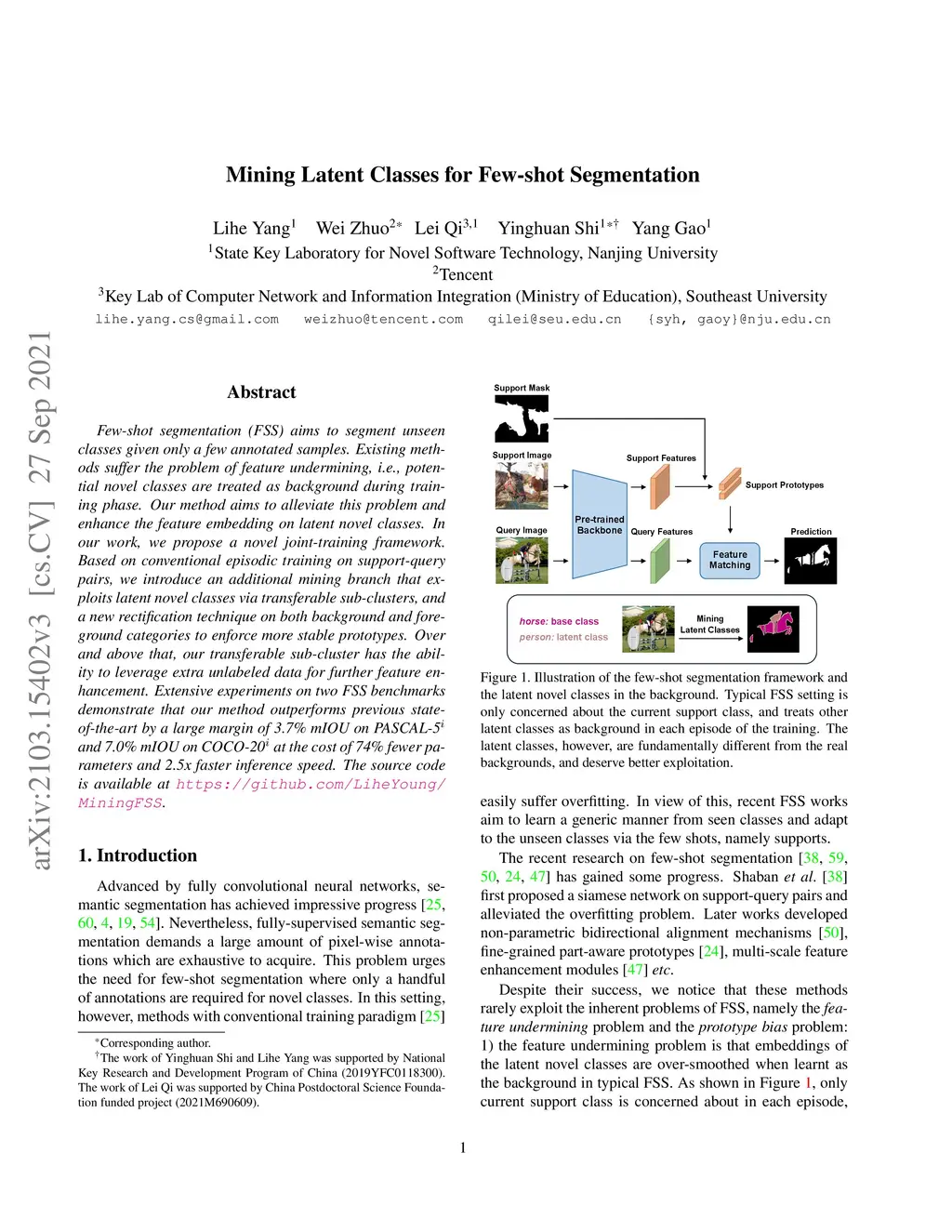 Mining Latent Classes for Few-shot Segmentation