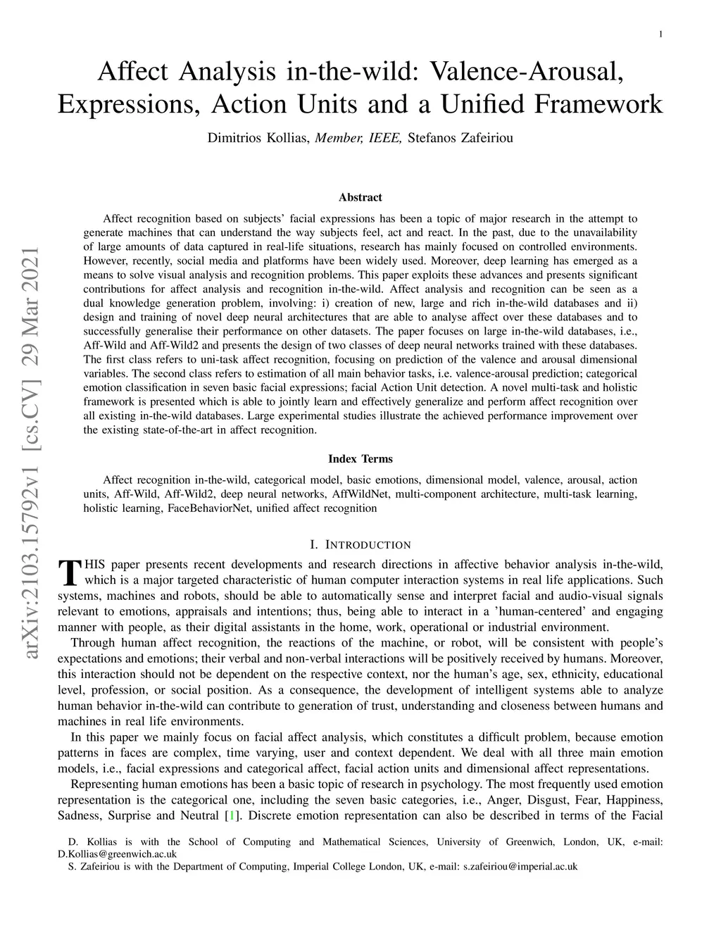 Affect Analysis in-the-wild: Valence-Arousal, Expressions, Action Units