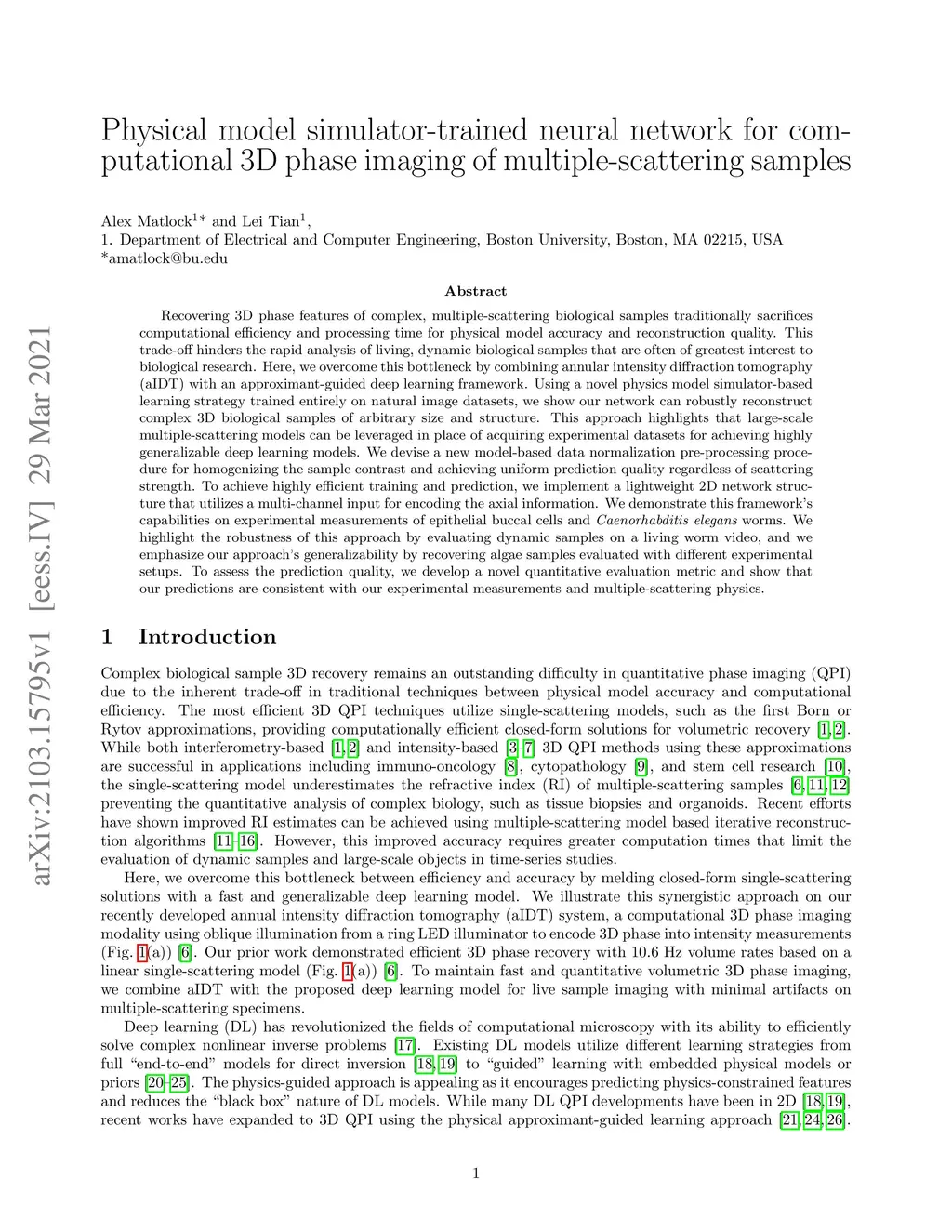 Recovering 3D phase features of complex, multiple-scattering biological samples traditionally sacrifices computational efficiency and processing time for physical model accuracy and reconstruction quality. This trade-off hinders the rapid analysis of living, dynamic biological samples that are often of greatest interest to biological research. Here, we overcome this bottleneck by combining annular intensity diffraction tomography (aIDT) with an approximant-guided deep learning framework. Using a novel physics model simulator-based learning strategy trained entirely on natural image datasets, we show our network can robustly reconstruct complex 3D biological samples of arbitrary size and structure. This approach highlights that large-scale multiple-scattering models can be leveraged in place of acquiring experimental datasets for achieving highly generalizable deep learning models. We devise a new model-based data normalization pre-processing procedure for homogenizing the sample contrast and achieving uniform prediction quality regardless of scattering strength. To achieve highly efficient training and prediction, we implement a lightweight 2D network structure that utilizes a multi-channel input for encoding the axial information. We demonstrate this framework's capabilities on experimental measurements of epithelial buccal cells and Caenorhabditis elegans worms. We highlight the robustness of this approach by evaluating dynamic samples on a living worm video, and we emphasize our approach's generalizability by recovering algae samples evaluated with different experimental setups. To assess the prediction quality, we develop a novel quantitative evaluation metric and show that our predictions are consistent with our experimental measurements and multiple-scattering physics.