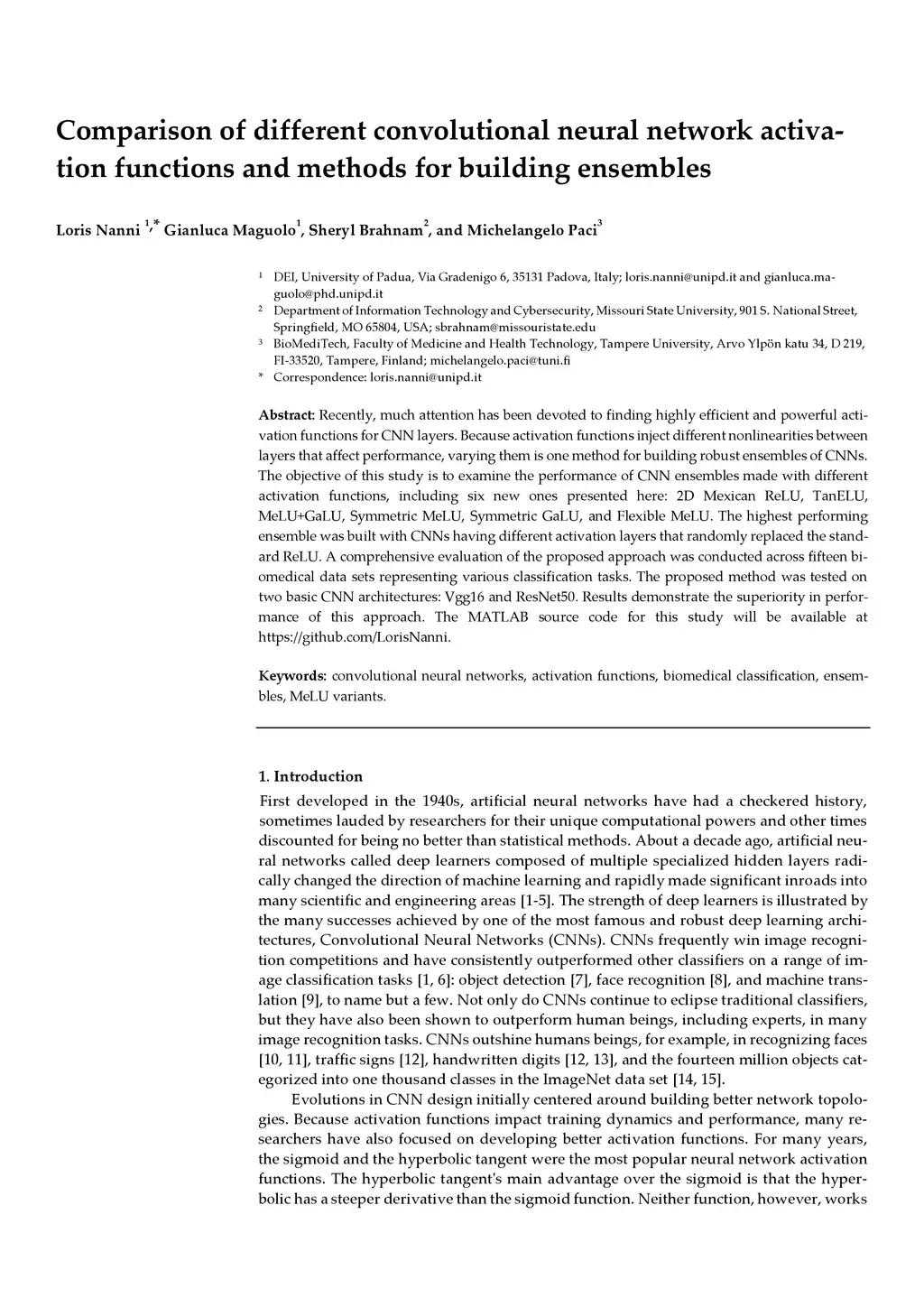 Recently, much attention has been devoted to finding highly efficient and powerful activation functions for CNN layers. Because activation functions inject different nonlinearities between layers that affect performance, varying them is one method for building robust ensembles of CNNs. The objective of this study is to examine the performance of CNN ensembles made with different activation functions, including six new ones presented here: 2D Mexican ReLU, TanELU, MeLU+GaLU, Symmetric MeLU, Symmetric GaLU, and Flexible MeLU. The highest performing ensemble was built with CNNs having different activation layers that randomly replaced the standard ReLU. A comprehensive evaluation of the proposed approach was conducted across fifteen biomedical data sets representing various classification tasks. The proposed method was tested on two basic CNN architectures: Vgg16 and ResNet50. Results demonstrate the superiority in performance of this approach. The MATLAB source code for this study will be available at https://github.com/LorisNanni.