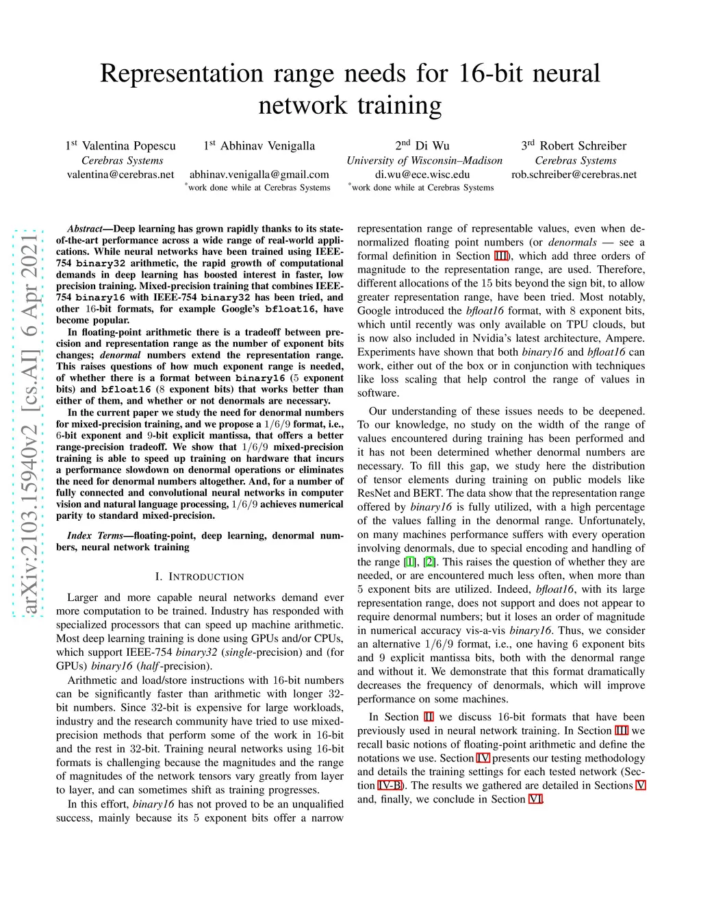 Representation range needs for 16-bit neural network training