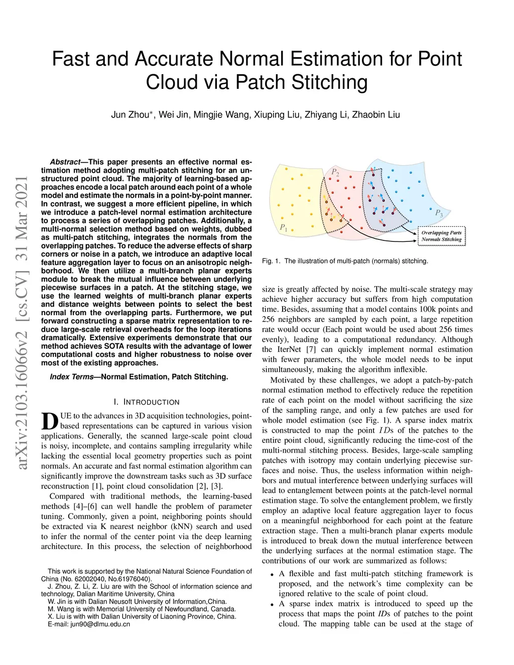 Fast and Accurate Normal Estimation for Point Cloud via Patch Stitching
