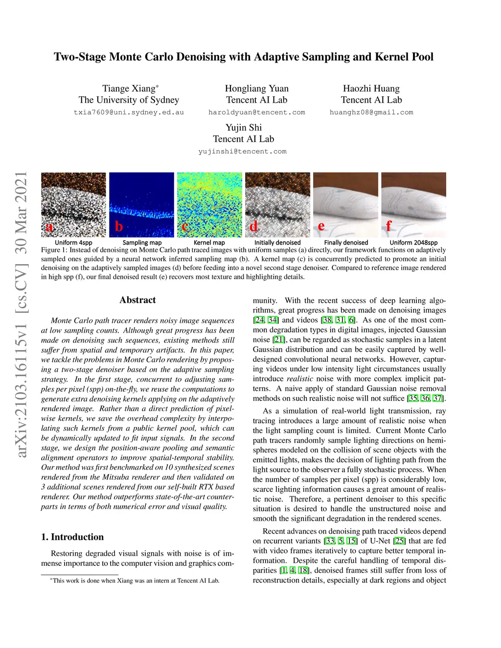 Two-Stage Monte Carlo Denoising with Adaptive Sampling and Kernel Pool
