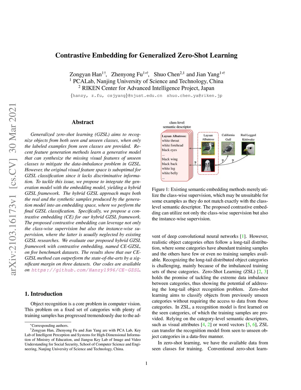 Contrastive Embedding for Generalized Zero-Shot Learning
