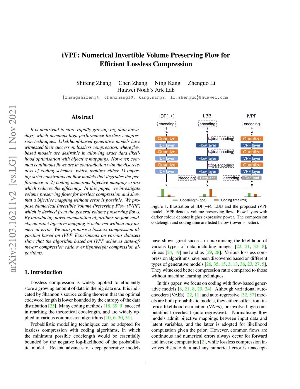 iVPF: Numerical Invertible Volume Preserving Flow for Efficient Lossless