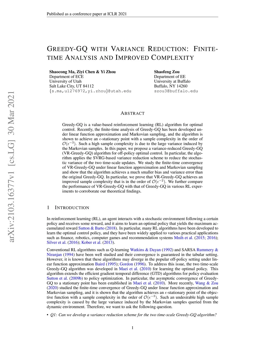 Greedy-GQ with Variance Reduction: Finite-time Analysis and Improved