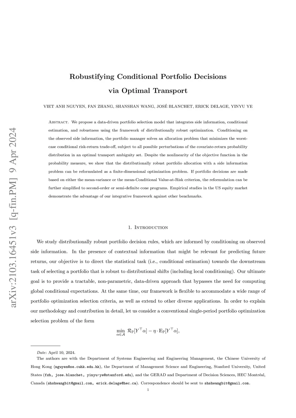 Robustifying Conditional Portfolio Decisions via Optimal Transport