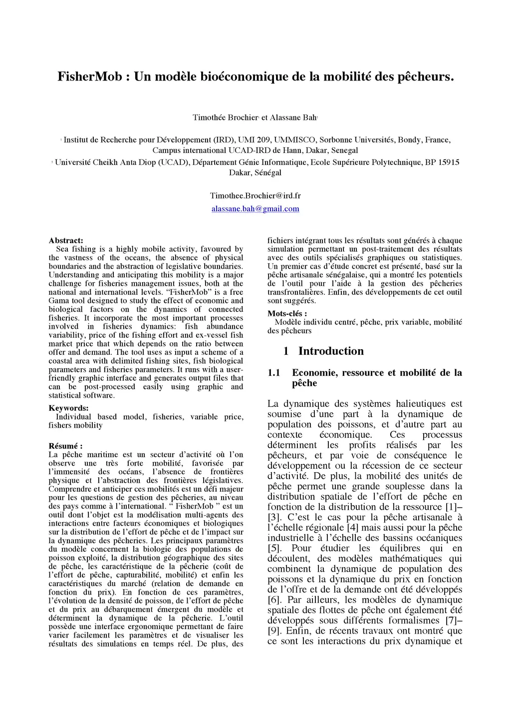Sea fishing is a highly mobile activity, favoured by the vastness of the oceans, the absence of physical boundaries and the abstraction of legislative boundaries. Understanding and anticipating this mobility is a major challenge for fisheries management issues, both at the national and international levels. ''FisherMob'' is a free Gama tool designed to study the effect of economic and biological factors on the dynamics of connected fisheries. It incorporate the most important processes involved in fisheries dynamics: fish abundance variability, price of the fishing effort and ex-vessel fish market price that which depends on the ratio between offer and demand. The tool uses as input a scheme of a coastal area with delimited fishing sites, fish biological parameters and fisheries parameters. It runs with a userfriendly graphic interface and generates output files that can be post-processed easily using graphic and statistical software.