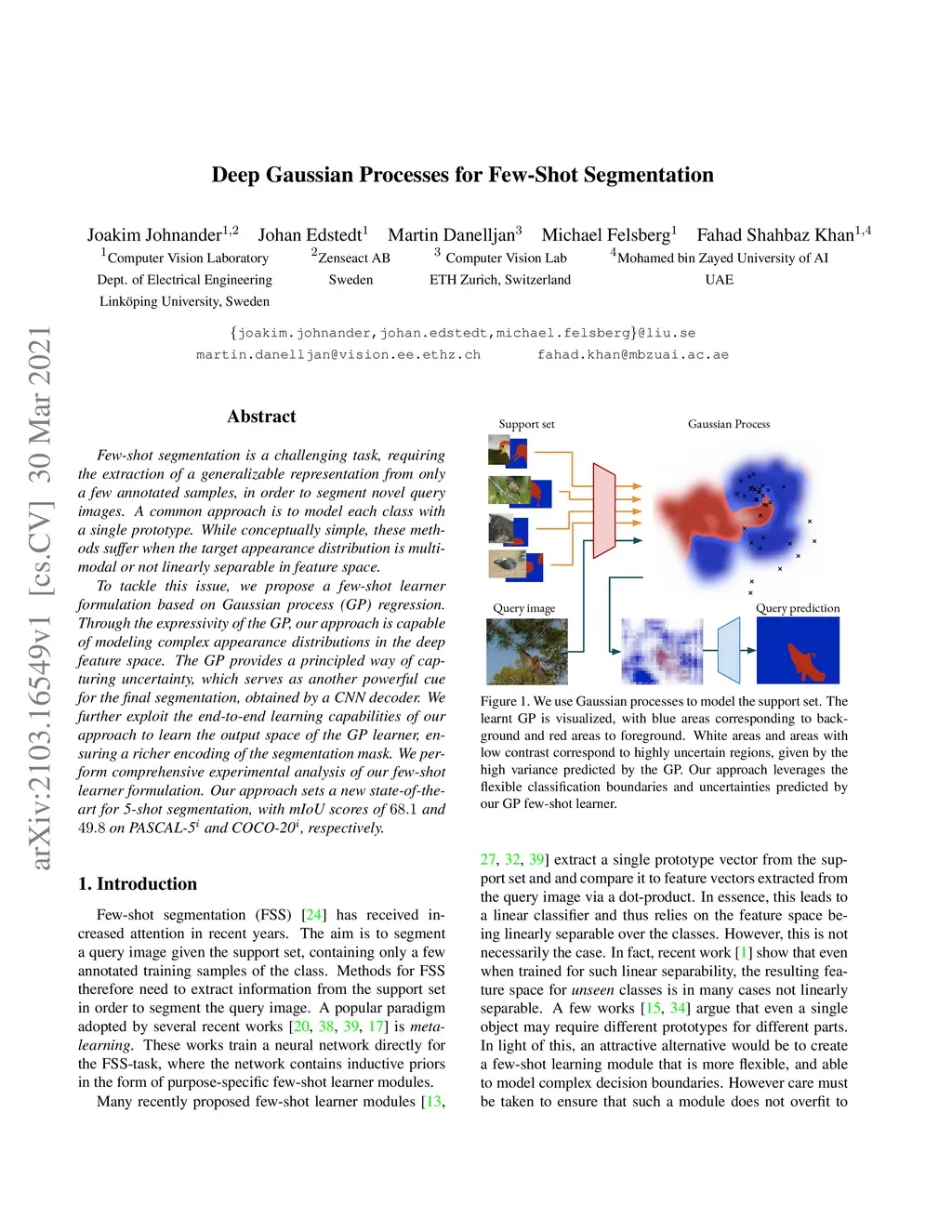 Few-shot segmentation is a challenging task, requiring the extraction of a generalizable representation from only a few annotated samples, in order to segment novel query images. A common approach is to model each class with a single prototype. While conceptually simple, these methods suffer when the target appearance distribution is multi-modal or not linearly separable in feature space. To tackle this issue, we propose a few-shot learner formulation based on Gaussian process (GP) regression. Through the expressivity of the GP, our approach is capable of modeling complex appearance distributions in the deep feature space. The GP provides a principled way of capturing uncertainty, which serves as another powerful cue for the final segmentation, obtained by a CNN decoder. We further exploit the end-to-end learning capabilities of our approach to learn the output space of the GP learner, ensuring a richer encoding of the segmentation mask. We perform comprehensive experimental analysis of our few-shot learner formulation. Our approach sets a new state-of-the-art for 5-shot segmentation, with mIoU scores of 68.1 and 49.8 on PASCAL-5i and COCO-20i, respectively