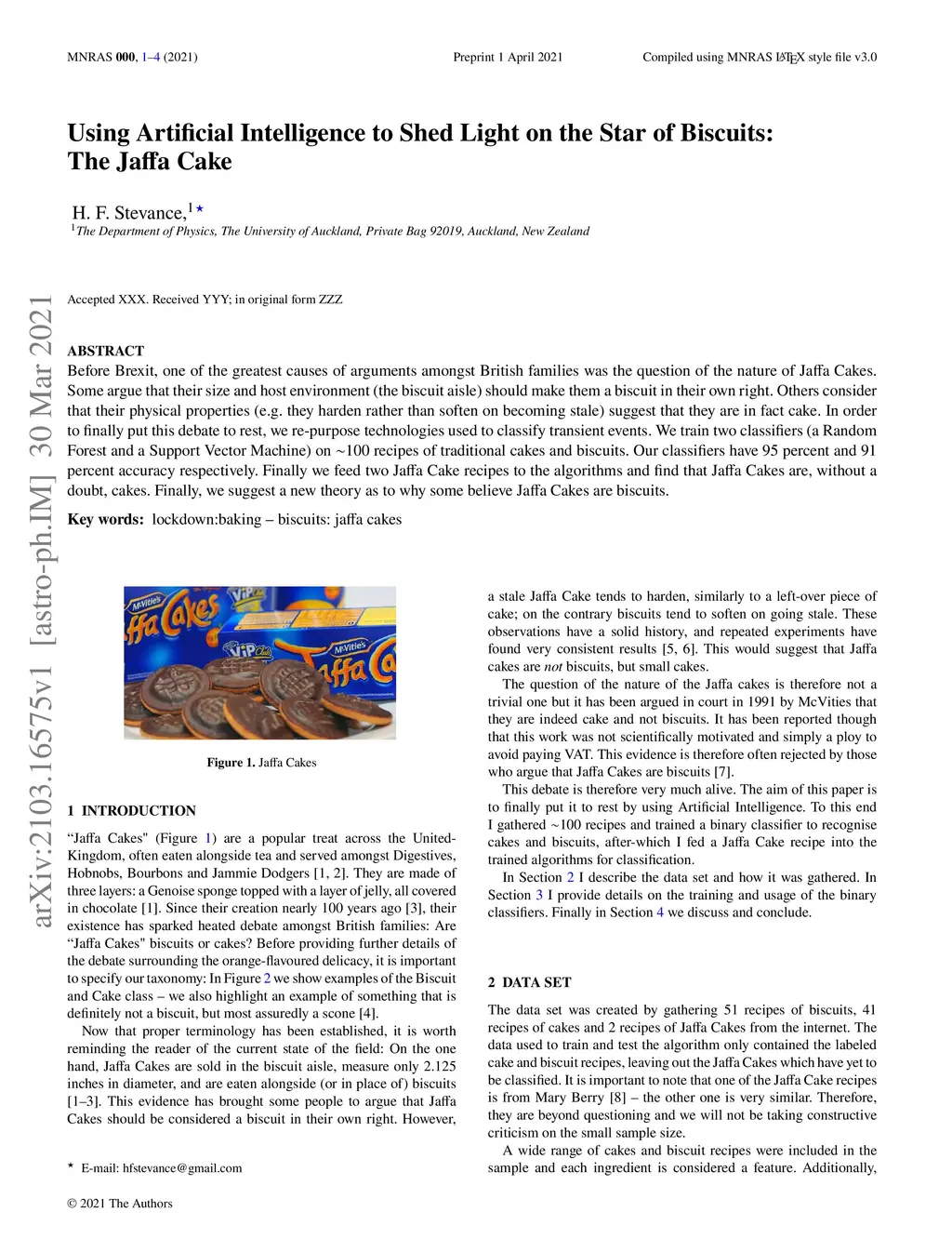 Before Brexit, one of the greatest causes of arguments amongst British families was the question of the nature of Jaffa Cakes. Some argue that their size and host environment (the biscuit aisle) should make them a biscuit in their own right. Others consider that their physical properties (e.g. they harden rather than soften on becoming stale) suggest that they are in fact cake. In order to finally put this debate to rest, we re-purpose technologies used to classify transient events. We train two classifiers (a Random Forest and a Support Vector Machine) on 100 recipes of traditional cakes and biscuits. Our classifiers have 95 percent and 91 percent accuracy respectively. Finally we feed two Jaffa Cake recipes to the algorithms and find that Jaffa Cakes are, without a doubt, cakes. Finally, we suggest a new theory as to why some believe Jaffa Cakes are biscuits.