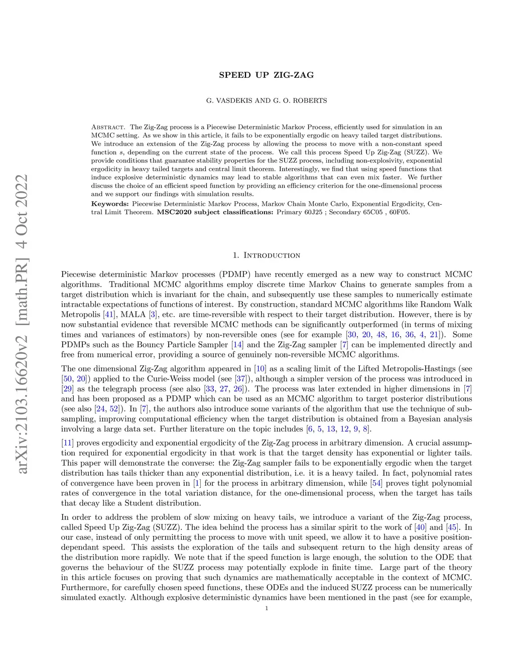 Zig-Zag is Piecewise Deterministic Markov Process, efficiently used for simulation in an MCMC setting. As we show in this article, it fails to be exponentially ergodic on heavy tailed target distributions. We introduce an extension of the Zig-Zag process by allowing the process to move with a non-constant speed function , depending on the current state of the process. We call this process Speed Up Zig-Zag (SUZZ). We provide conditions that guarantee stability properties for the SUZZ process, including non-explosivity, exponential ergodicity in heavy tailed targets and central limit theorem. Interestingly, we find that using speed functions that induce explosive deterministic dynamics may lead to stable algorithms that can even mix faster. We further discuss the choice of an efficient speed function by providing an efficiency criterion for the one-dimensional process and we support our findings with simulation results.