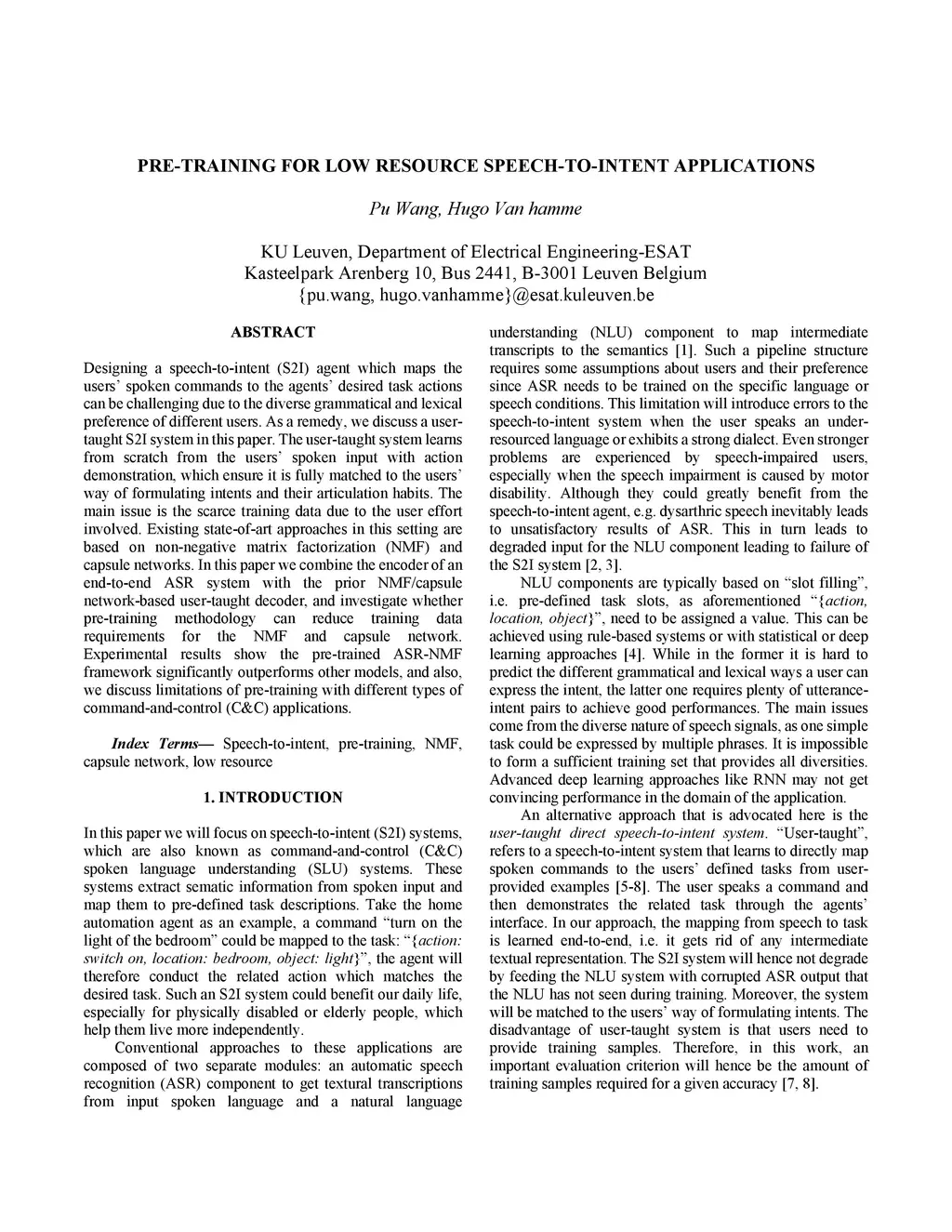 Pre-training for low resource speech-to-intent applications