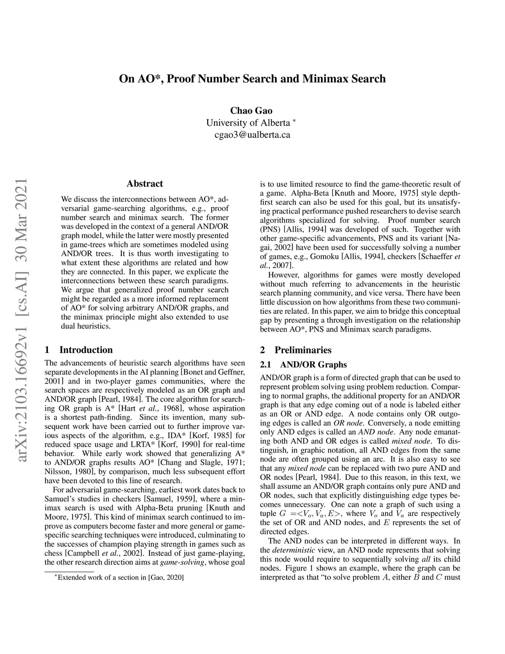 We discuss the interconnections between AO*, adversarial game-searching algorithms, e.g., proof number search and minimax search. The former was developed in the context of a general AND/OR graph model, while the latter were mostly presented in game-trees which are sometimes modeled using AND/OR trees. It is thus worth investigating to what extent these algorithms are related and how they are connected. In this paper, we explicate the interconnections between these search paradigms. We argue that generalized proof number search might be regarded as a more informed replacement of AO* for solving arbitrary AND/OR graphs, and the minimax principle might also extended to use dual heuristics.