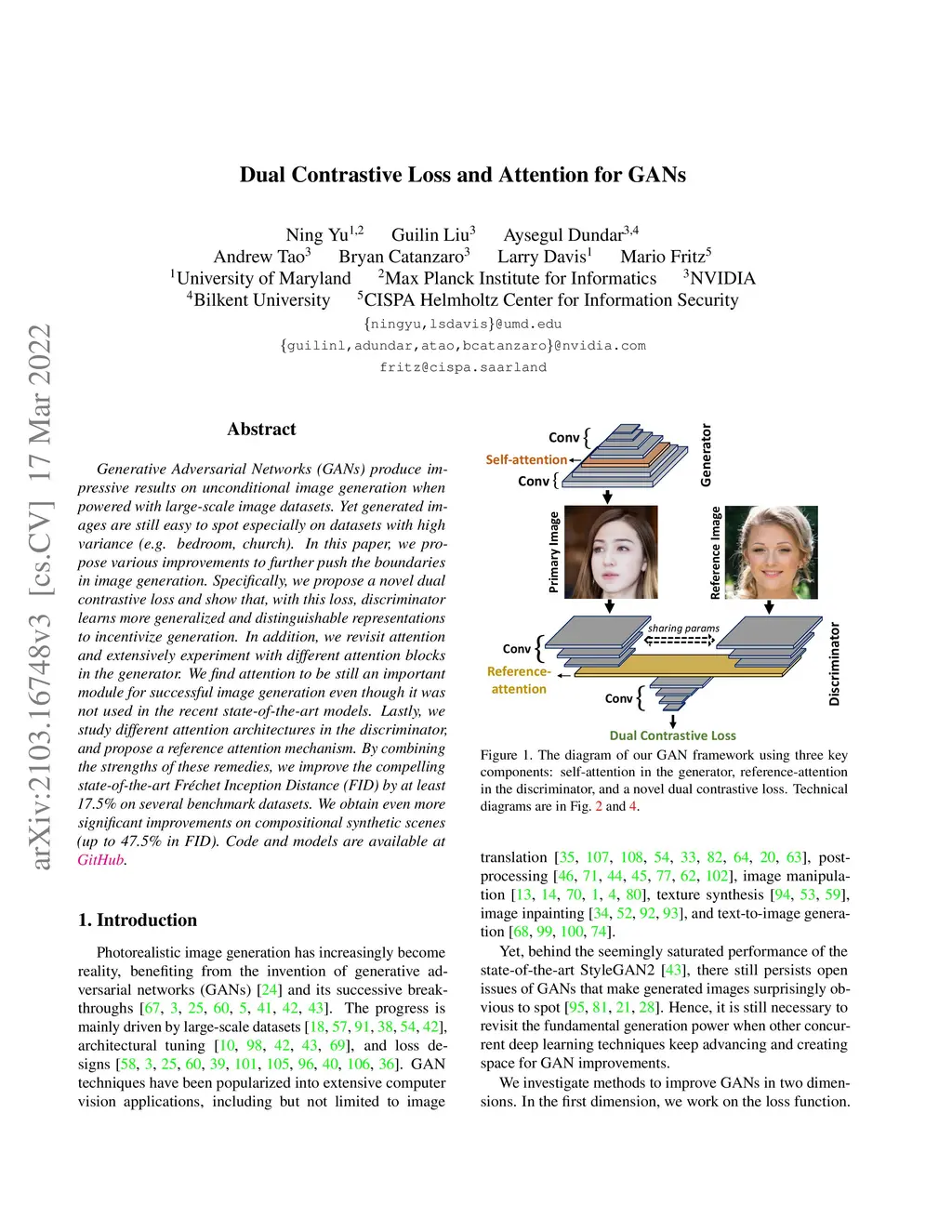 Dual Contrastive Loss and Attention for GANs