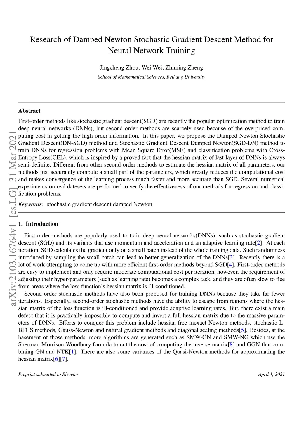 Research of Damped Newton Stochastic Gradient Descent Method for Neural