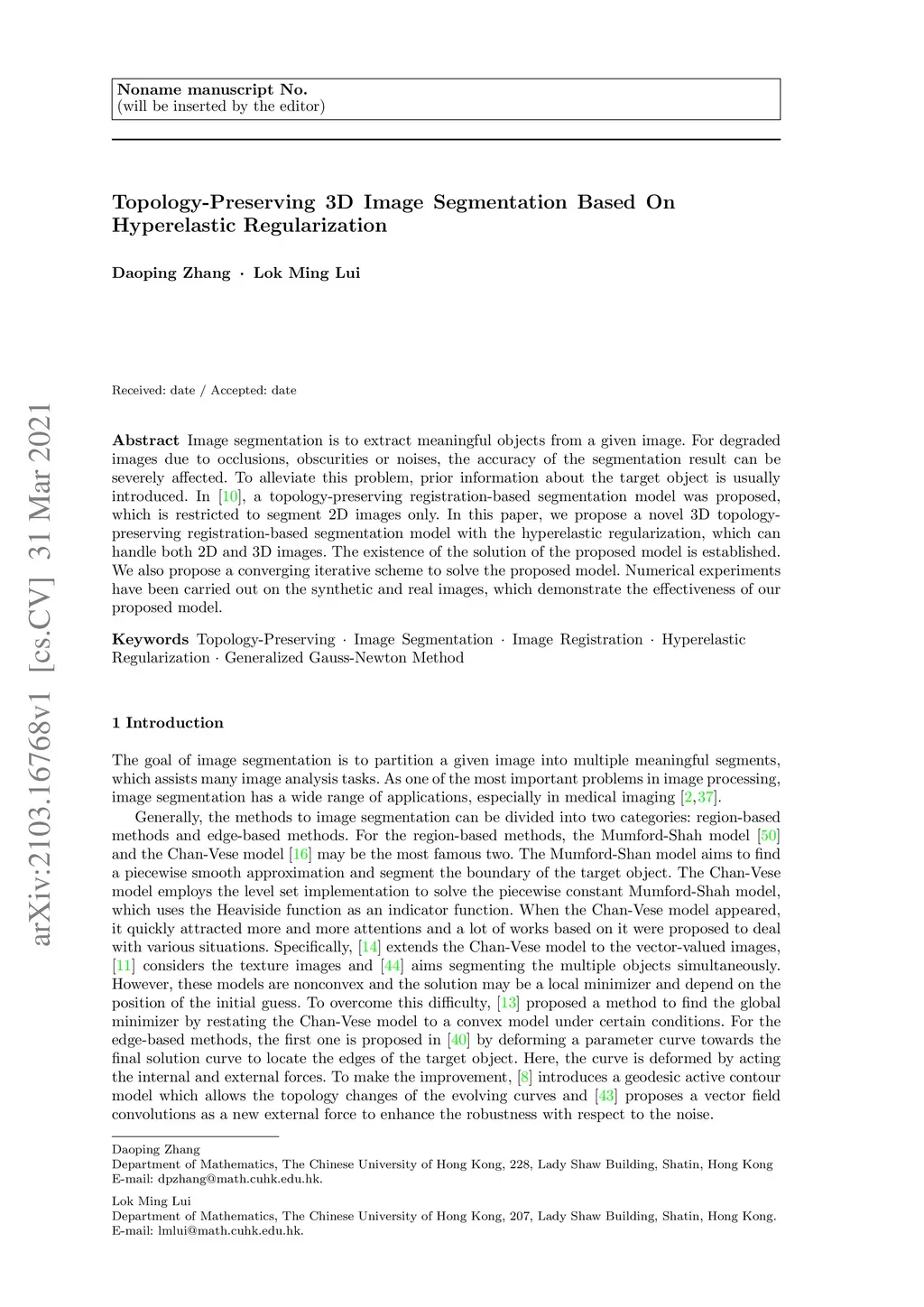 Topology-Preserving 3D Image Segmentation Based On Hyperelastic