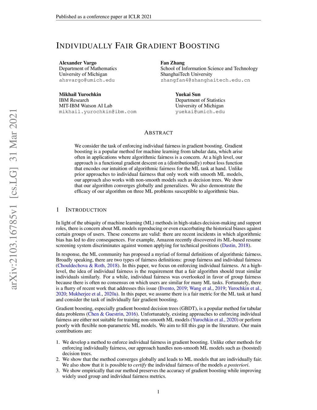 We consider the task of enforcing individual fairness in gradient boosting. Gradient boosting is a popular method for machine learning from tabular data, which arise often in applications where algorithmic fairness is a concern. At a high level, our approach is a functional gradient descent on a (distributionally) robust loss function that encodes our intuition of algorithmic fairness for the ML task at hand. Unlike prior approaches to individual fairness that only work with smooth ML models, our approach also works with non-smooth models such as decision trees. We show that our algorithm converges globally and generalizes. We also demonstrate the efficacy of our algorithm on three ML problems susceptible to algorithmic bias.