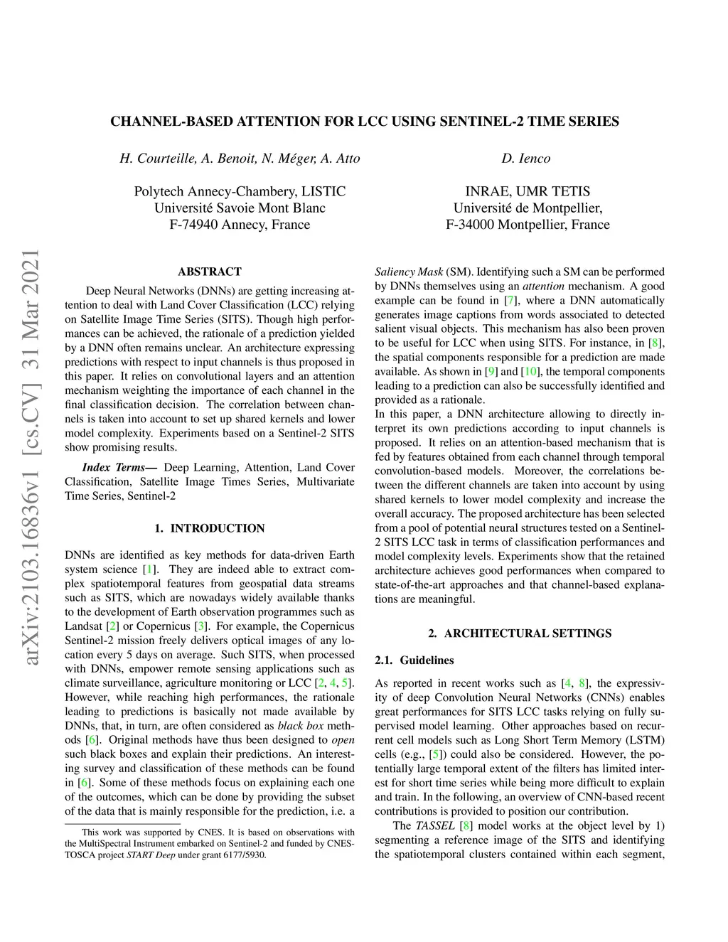 Deep Neural Networks (DNNs) are getting increasing attention to deal with Land Cover Classification (LCC) relying on Satellite Image Time Series (SITS). Though high performances can be achieved, the rationale of a prediction yielded by a DNN often remains unclear. An architecture expressing predictions with respect to input channels is thus proposed in this paper. It relies on convolutional layers and an attention mechanism weighting the importance of each channel in the final classification decision. The correlation between channels is taken into account to set up shared kernels and lower model complexity. Experiments based on a Sentinel-2 SITS show promising results.