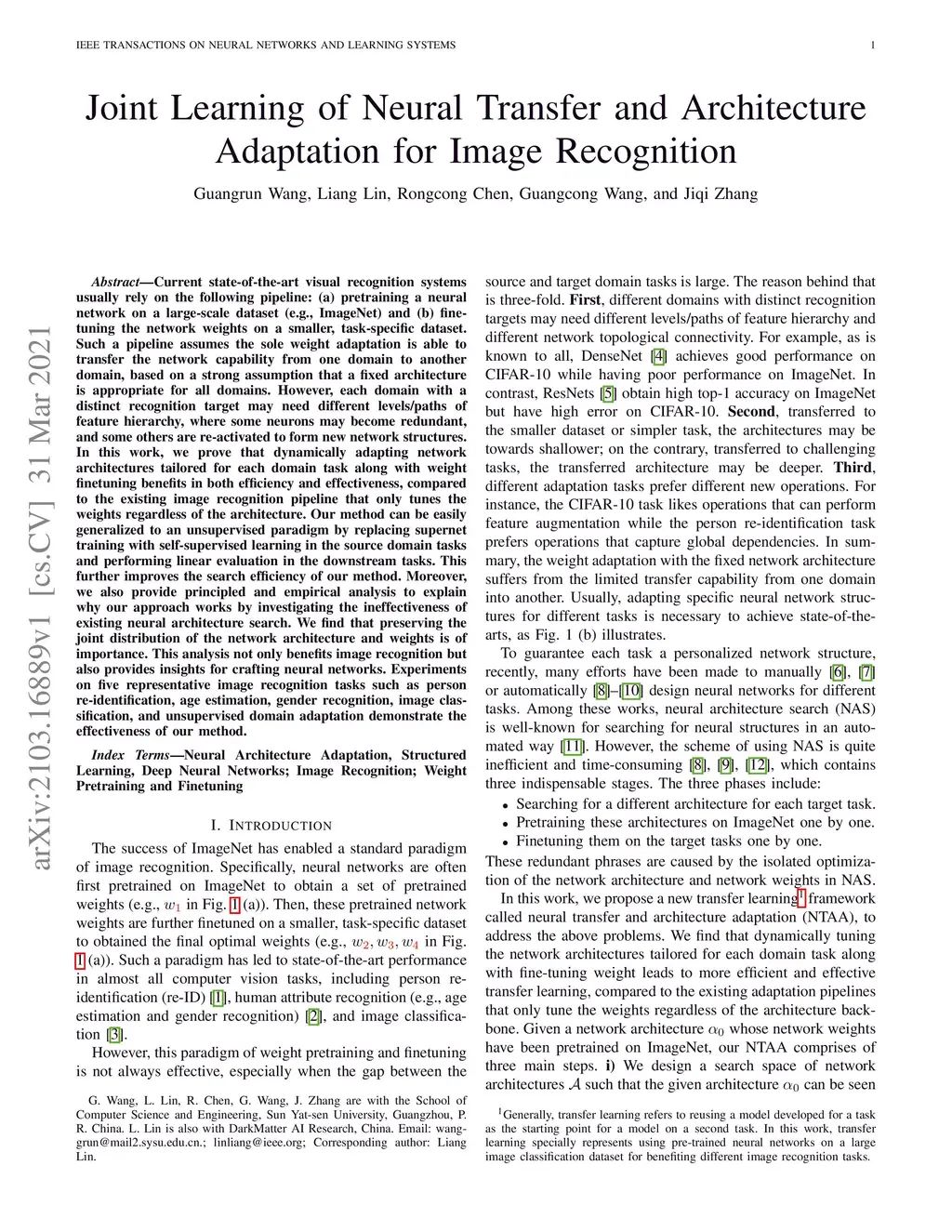 Joint Learning of Neural Transfer and Architecture Adaptation for Image