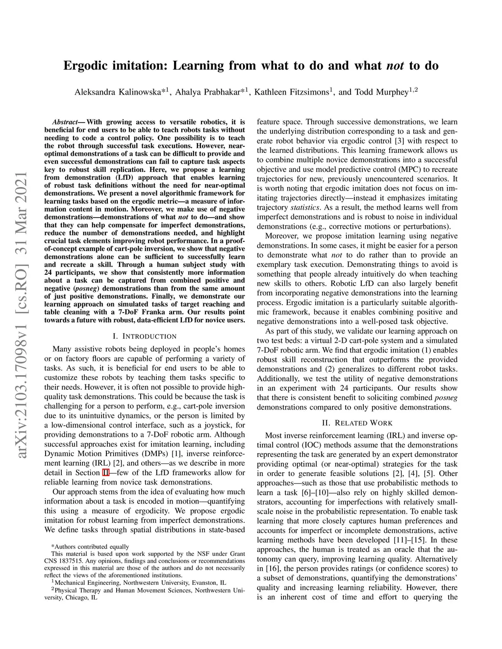 Ergodic imitation: Learning from what to do and what not to do