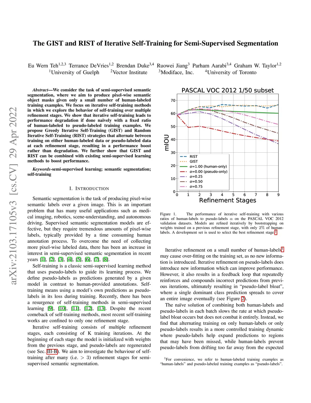 We consider the task of semi-supervised semantic segmentation, where we aim to produce pixel-wise semantic object masks given only a small number of human-labeled training examples. We focus on iterative self-training methods in which we explore the behavior of self-training over multiple refinement stages. We show that iterative self-training leads to performance degradation if done na\"ively with a fixed ratio of human-labeled to pseudo-labeled training examples. We propose Greedy Iterative Self-Training (GIST) and Random Iterative Self-Training (RIST) strategies that alternate between training on either human-labeled data or pseudo-labeled data at each refinement stage, resulting in a performance boost rather than degradation. We further show that GIST and RIST can be combined with existing semi-supervised learning methods to boost performance.