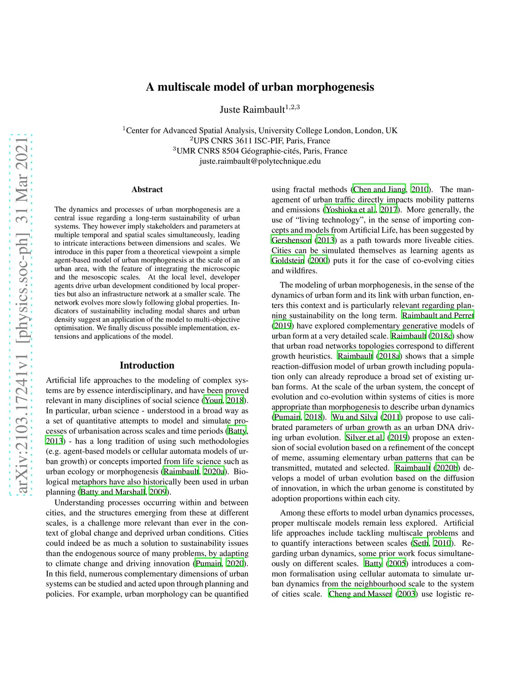 A multiscale model of urban morphogenesis