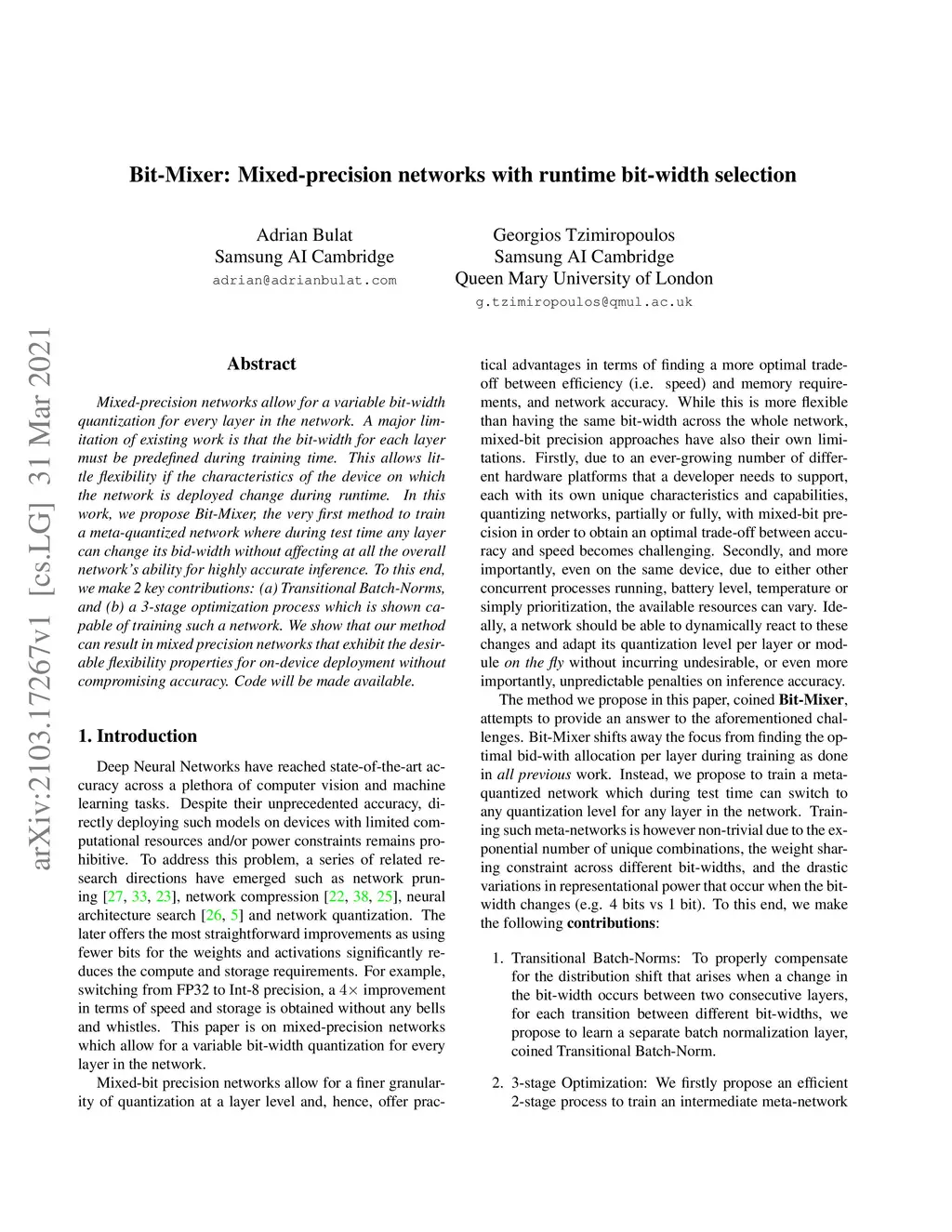 Mixed-precision networks allow for a variable bit-width quantization for every layer in the network. A major limitation of existing work is that the bit-width for each layer must be predefined during training time. This allows little flexibility if the characteristics of the device on which the network is deployed change during runtime. In this work, we propose Bit-Mixer, the very first method to train a meta-quantized network where during test time any layer can change its bid-width without affecting at all the overall network's ability for highly accurate inference. To this end, we make 2 key contributions: (a) Transitional Batch-Norms, and (b) a 3-stage optimization process which is shown capable of training such a network. We show that our method can result in mixed precision networks that exhibit the desirable flexibility properties for on-device deployment without compromising accuracy. Code will be made available.