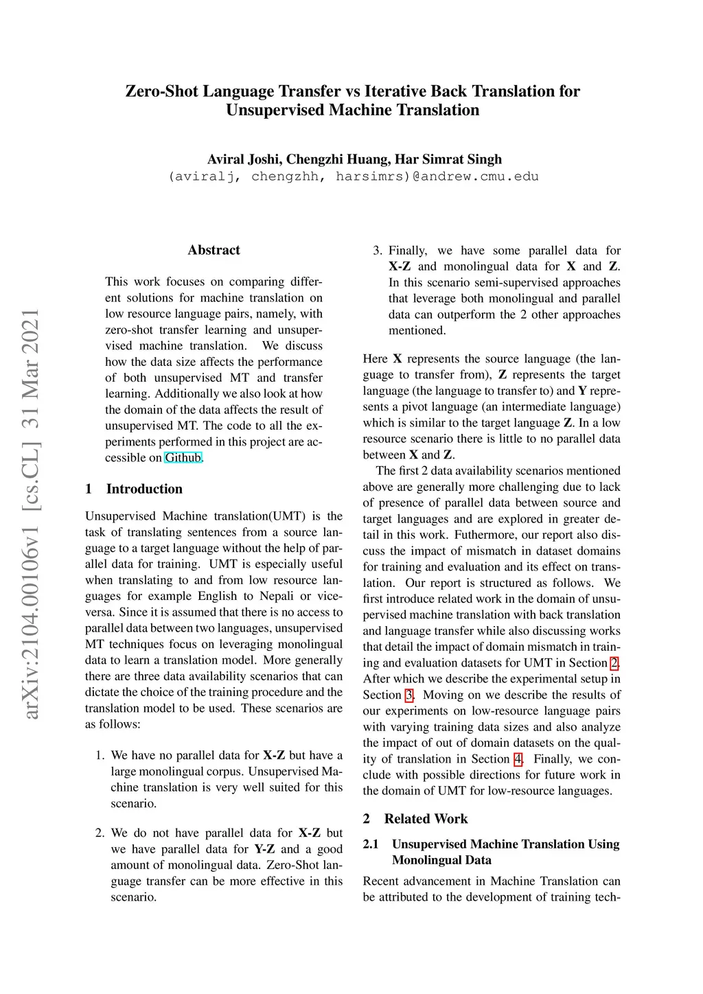 Zero-Shot Language Transfer vs Iterative Back Translation for