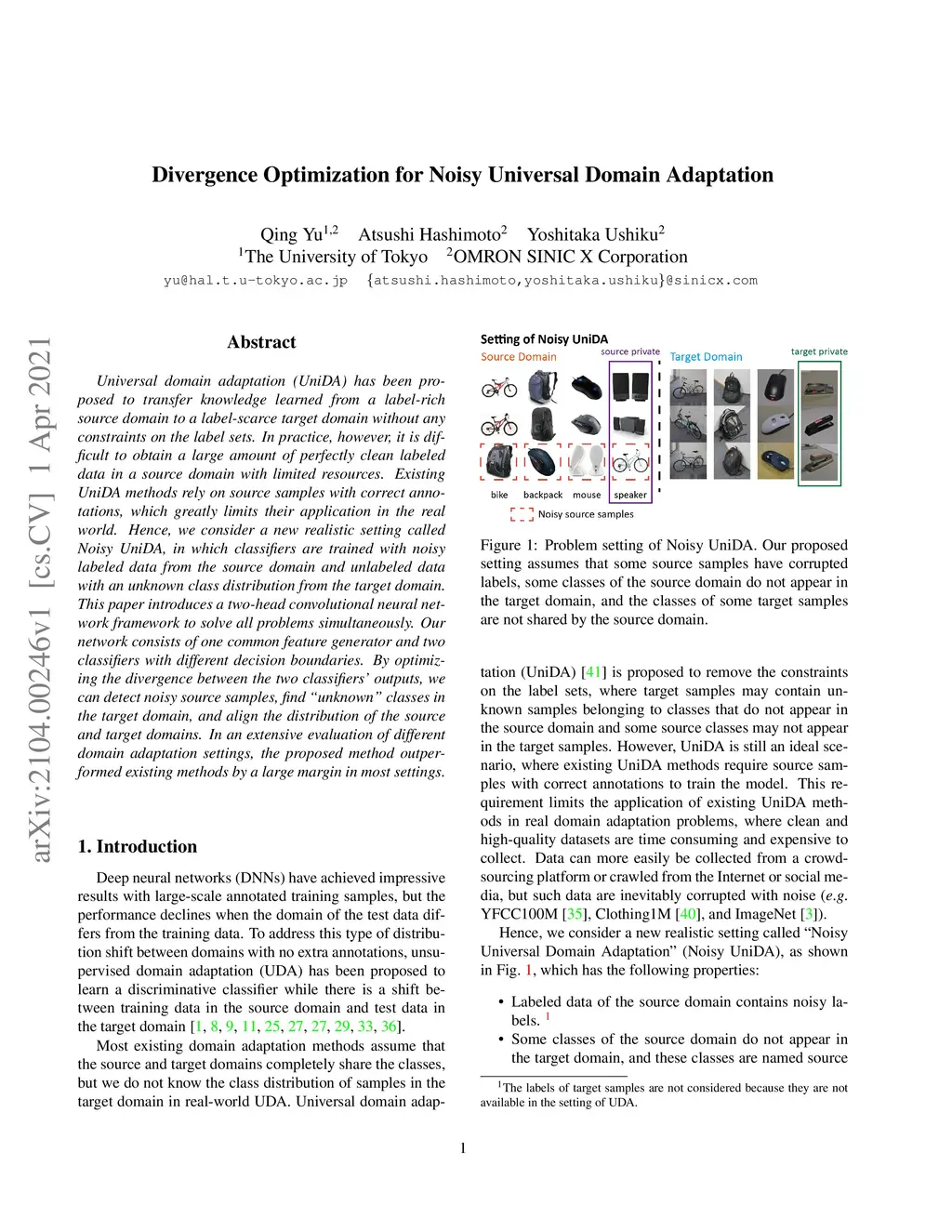 Divergence Optimization for Noisy Universal Domain Adaptation