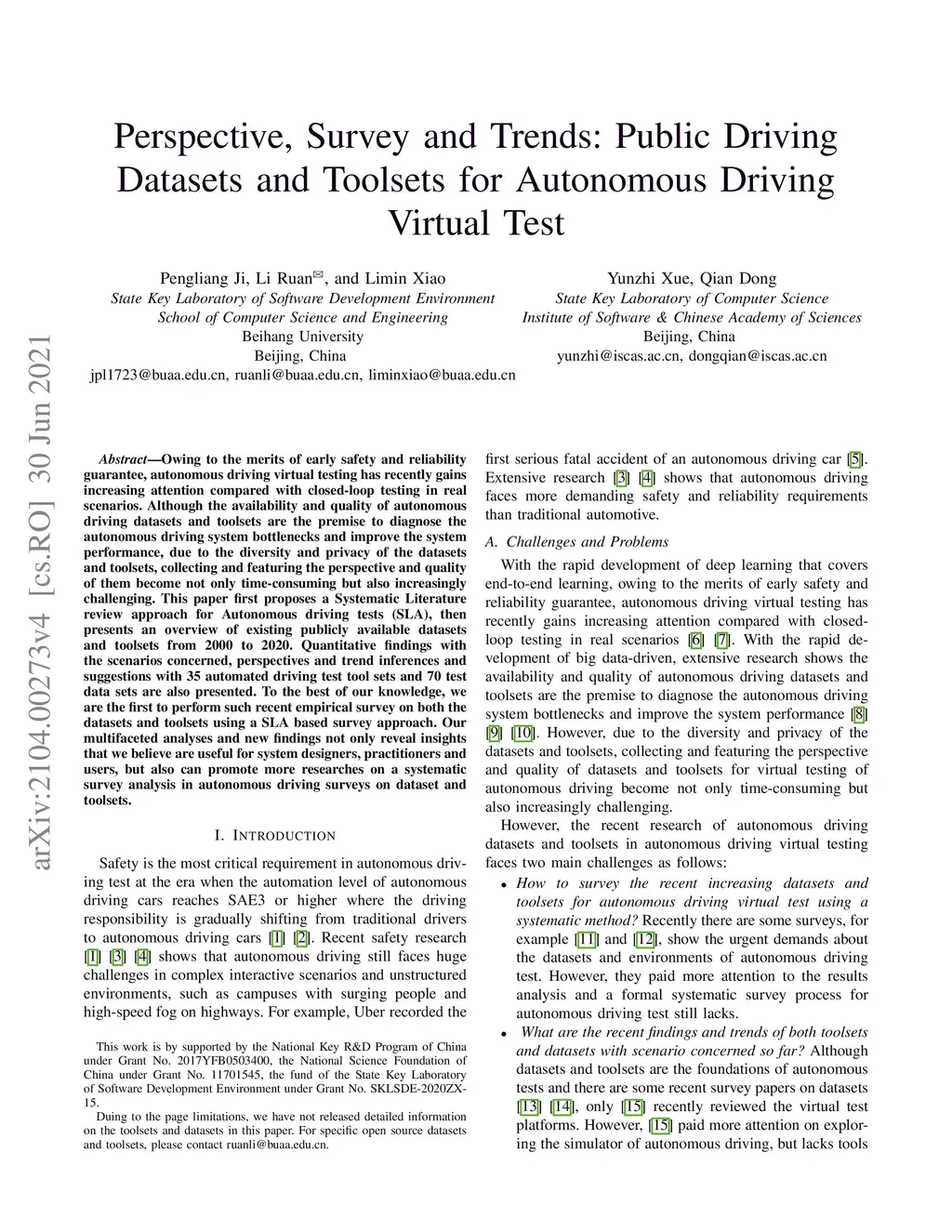 Owing to the merits of early safety and reliability guarantee, autonomous driving virtual testing has recently gains increasing attention compared with closed-loop testing in real scenarios. Although the availability and quality of autonomous driving datasets and toolsets are the premise to diagnose the autonomous driving system bottlenecks and improve the system performance, due to the diversity and privacy of the datasets and toolsets, collecting and featuring the perspective and quality of them become not only time-consuming but also increasingly challenging. This paper first proposes a Systematic Literature review approach for Autonomous driving tests (SLA), then presents an overview of existing publicly available datasets and toolsets from 2000 to 2020. Quantitative findings with the scenarios concerned, perspectives and trend inferences and suggestions with 35 automated driving test tool sets and 70 test data sets are also presented. To the best of our knowledge, we are the first to perform such recent empirical survey on both the datasets and toolsets using a SLA based survey approach. Our multifaceted analyses and new findings not only reveal insights that we believe are useful for system designers, practitioners and users, but also can promote more researches on a systematic survey analysis in autonomous driving surveys on dataset and toolsets.