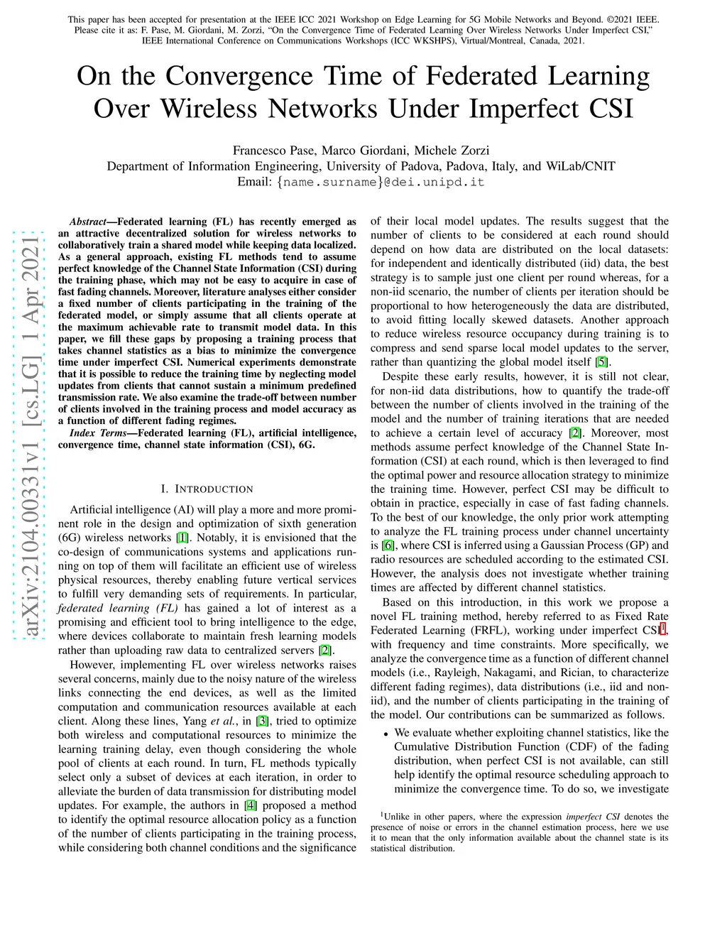 On the Convergence Time of Federated Learning Over Wireless Networks