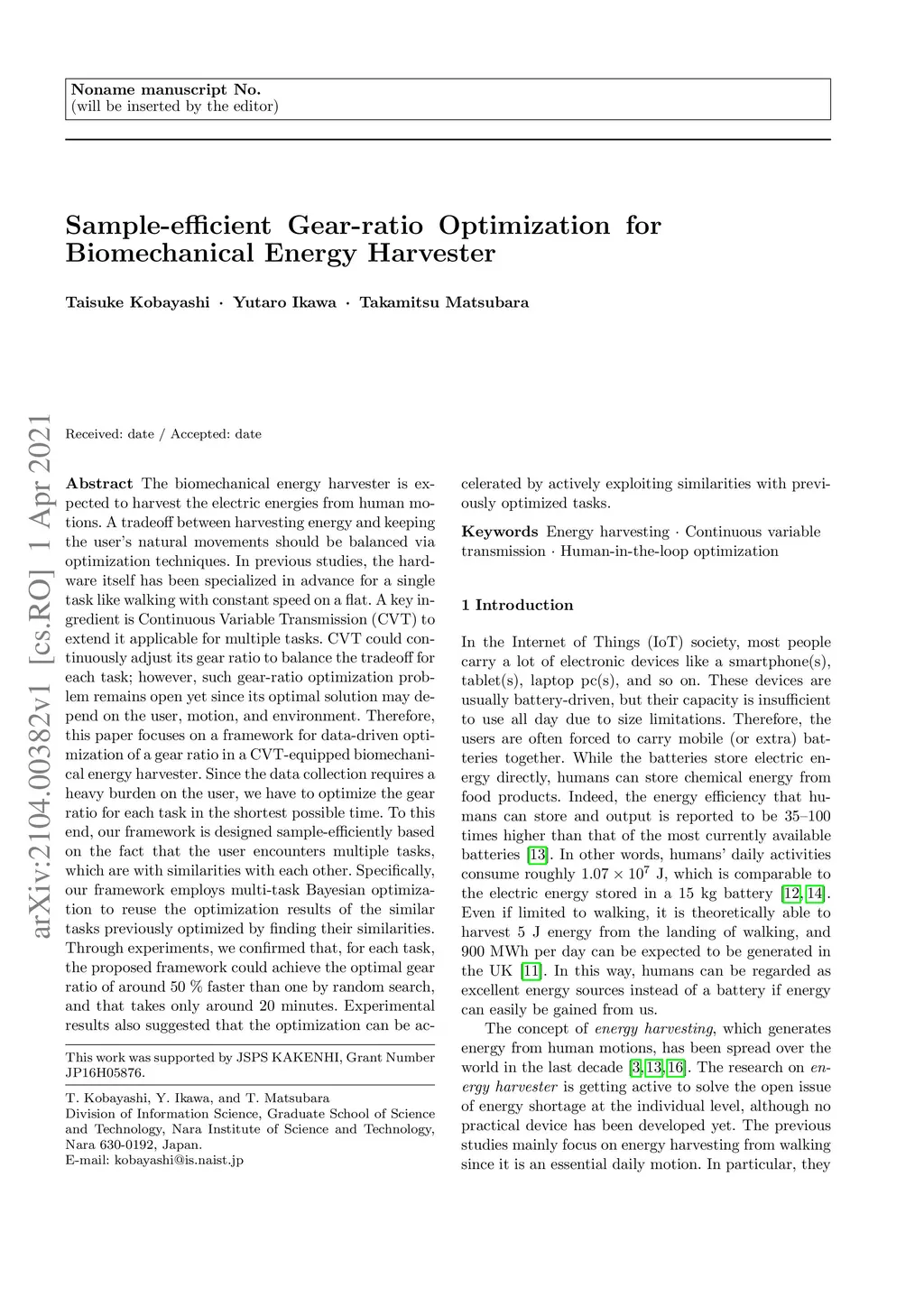 Sample-efficient Gear-ratio Optimization for Biomechanical Energy