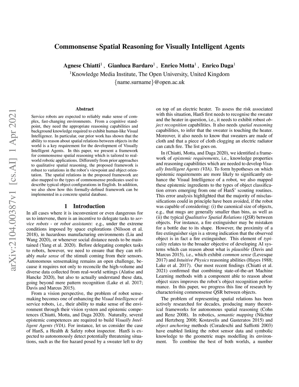 Commonsense Spatial Reasoning for Visually Intelligent Agents