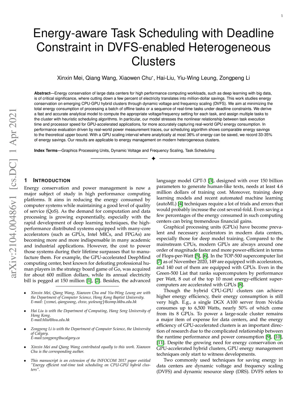 Energy-aware Task Scheduling with Deadline Constraint in DVFS-enabled