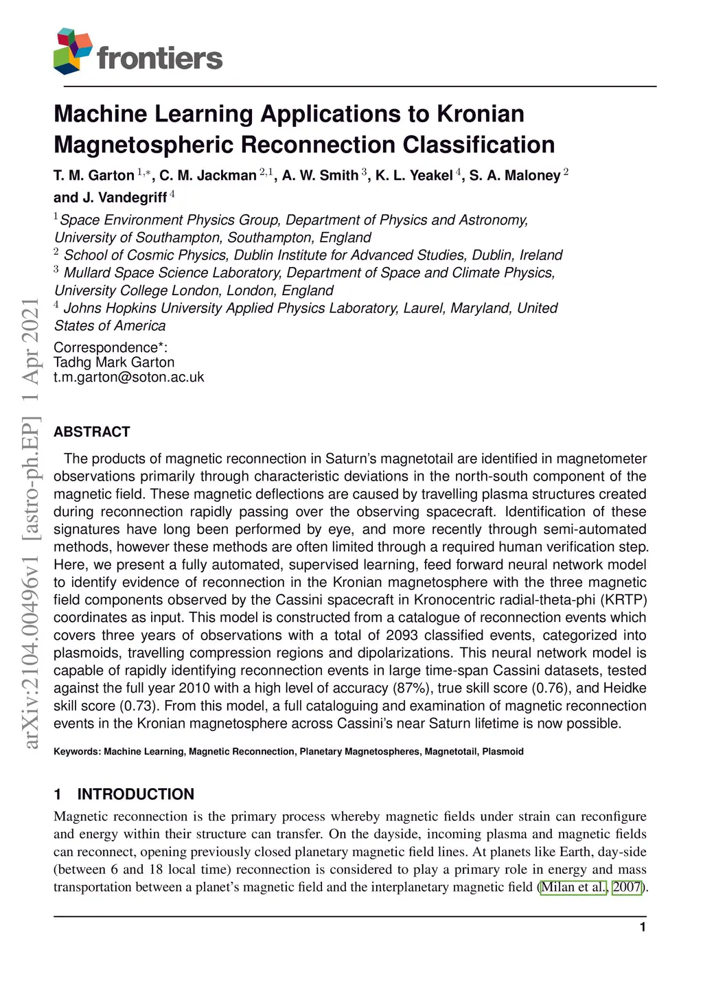 Machine Learning Applications to Kronian Magnetospheric Reconnection