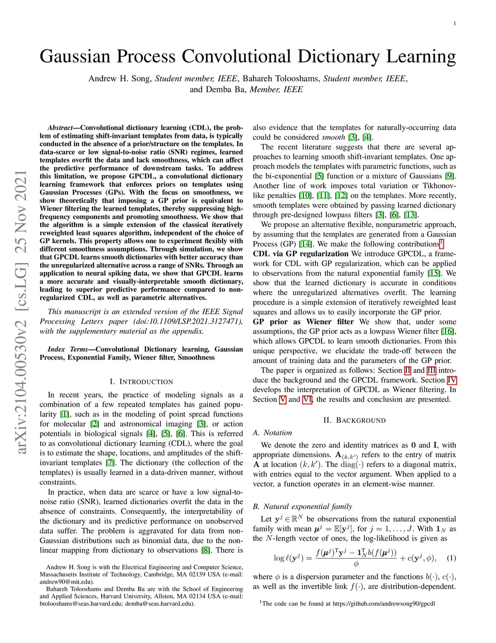 Convolutional dictionary learning (CDL), the problem of estimating shift-invariant templates from data, is typically conducted in the absence of a prior/structure on the templates. In data-scarce or low signal-to-noise ratio (SNR) regimes, learned templates overfit the data and lack smoothness, which can affect the predictive performance of downstream tasks. To address this limitation, we propose GPCDL, a convolutional dictionary learning framework that enforces priors on templates using Gaussian Processes (GPs). With the focus on smoothness, we show theoretically that imposing a GP prior is equivalent to Wiener filtering the learned templates, thereby suppressing high-frequency components and promoting smoothness. We show that the algorithm is a simple extension of the classical iteratively reweighted least squares algorithm, independent of the choice of GP kernels. This property allows one to experiment flexibly with different smoothness assumptions. Through simulation, we show that GPCDL learns smooth dictionaries with better accuracy than the unregularized alternative across a range of SNRs. Through an application to neural spiking data, we show that GPCDL learns a more accurate and visually-interpretable smooth dictionary, leading to superior predictive performance compared to non-regularized CDL, as well as parametric alternatives.