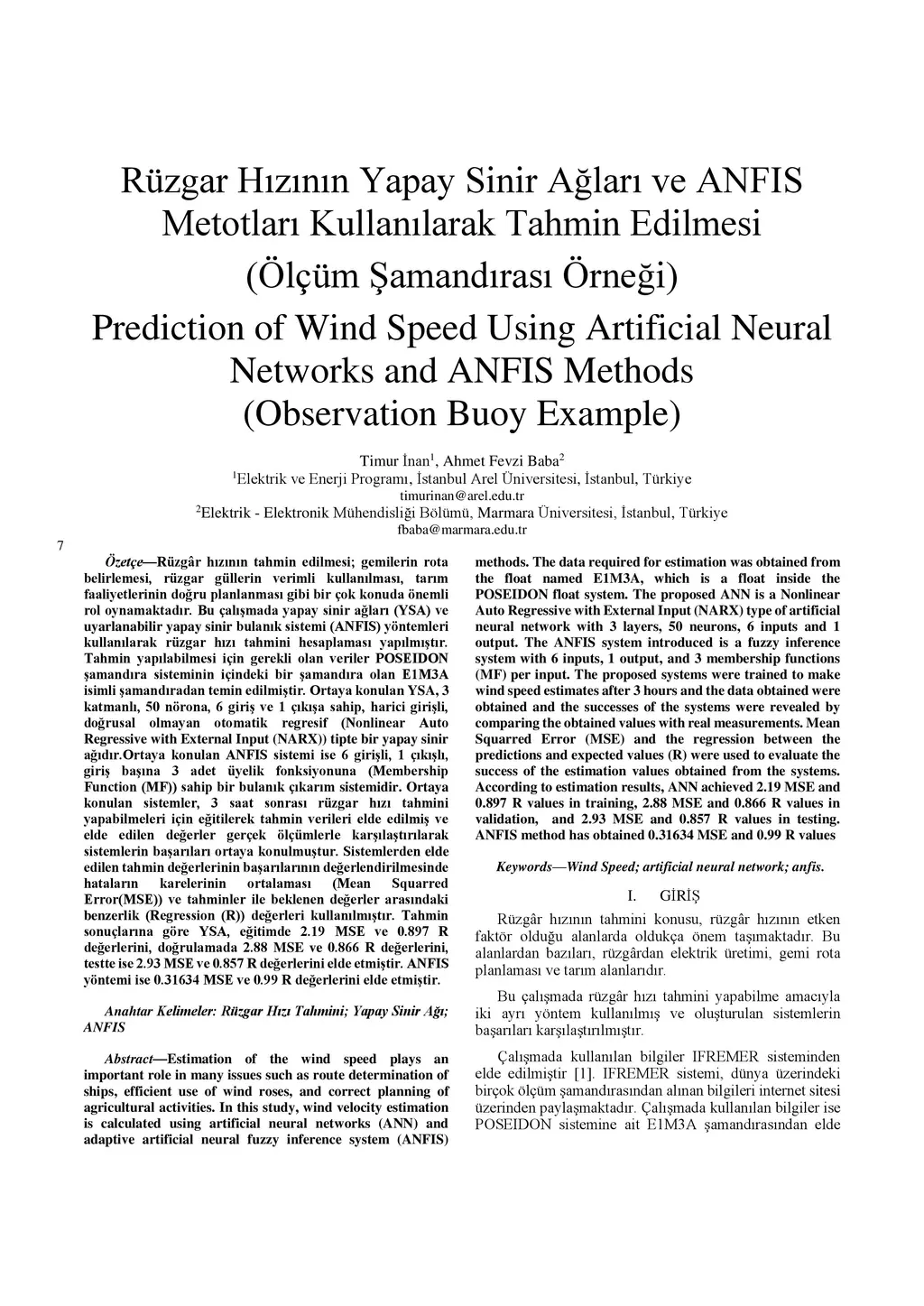Prediction of Wind Speed Using Artificial Neural Networks and ANFIS