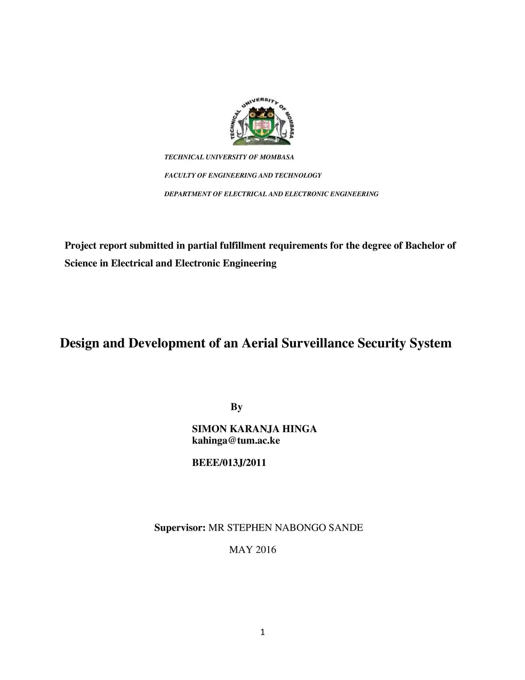 Aerial security means performing security-aimed monitoring and surveillance operations with the help of airborne vehicles. This kind of activities suggest that human officers (security organizations, law enforcement, police etc.) would be able to remotely monitor and view video and data acquired from Drones while planning and evaluating their operations. The spectrum of applications where drones are used for security purposes is vast: scouting and reporting emergencies, monitoring accidents and crimes, surveillance of a certain landscape area, operating in highly busy and pedestrians as well as their tracking from up in the sky, and so on. The project will serve as a bridge to connect actual happening in areas that cannot be navigated easily by security personnel of corporate institution as the Drone will be used to hover and record the actual happening as it transmit to a ground station which records and analyses the events as they streams in, also due its capability of flying over different altitudes the drone can generally be used on areas with rugged terrains or over water bodies for a time dependent on its power capacity.