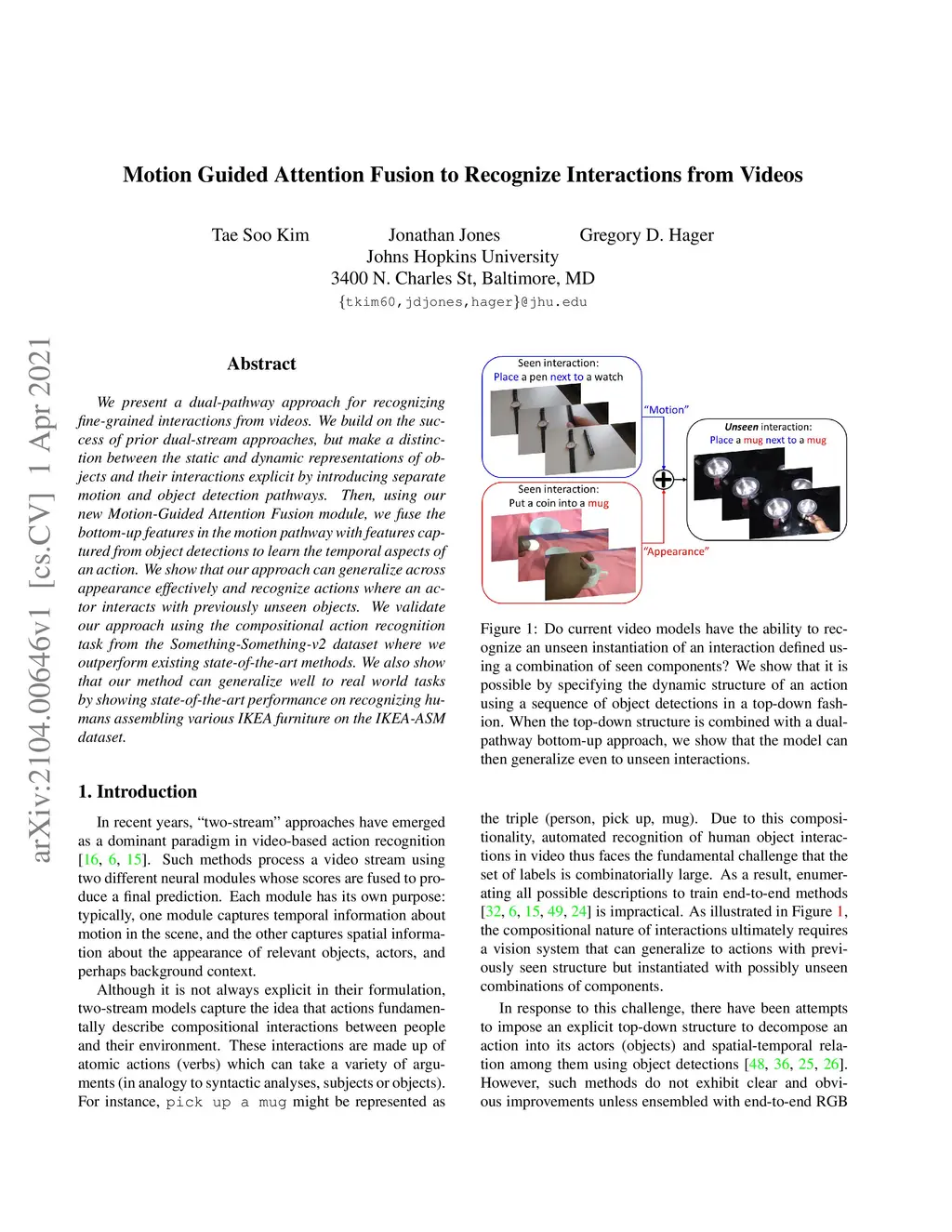 Motion Guided Attention Fusion to Recognize Interactions from Videos