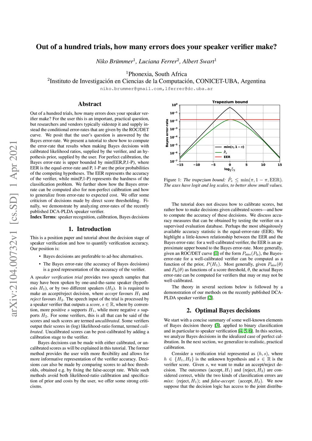 Out of a hundred trials, how many errors does your speaker verifier make? For the user this is an important, practical question, but researchers and vendors typically sidestep it and supply instead the conditional error-rates that are given by the ROC/DET curve. We posit that the user's question is answered by the Bayes error-rate. We present a tutorial to show how to compute the error-rate that results when making Bayes decisions with calibrated likelihood ratios, supplied by the verifier, and an hypothesis prior, supplied by the user. For perfect calibration, the Bayes error-rate is upper bounded by min(EER,P,1-P), where EER is the equal-error-rate and P, 1-P are the prior probabilities of the competing hypotheses. The EER represents the accuracy of the verifier, while min(P,1-P) represents the hardness of the classification problem. We further show how the Bayes error-rate can be computed also for non-perfect calibration and how to generalize from error-rate to expected cost. We offer some criticism of decisions made by direct score thresholding. Finally, we demonstrate by analyzing error-rates of the recently published DCA-PLDA speaker verifier.