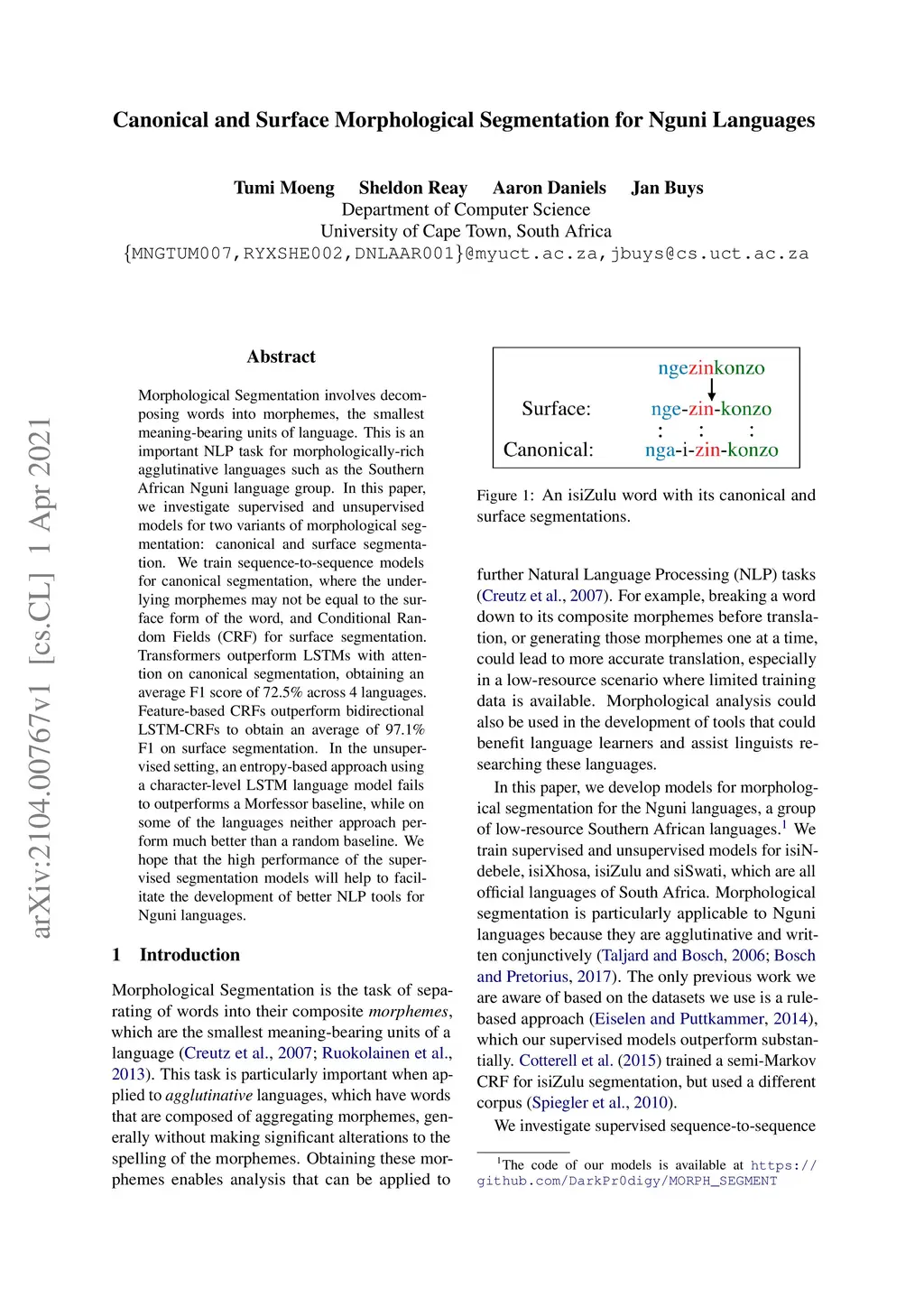 Canonical and Surface Morphological Segmentation for Nguni Languages