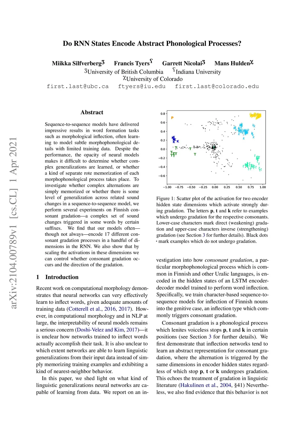 Sequence-to-sequence models have delivered impressive results in word formation tasks such as morphological inflection, often learning to model subtle morphophonological details with limited training data. Despite the performance, the opacity of neural models makes it difficult to determine whether complex generalizations are learned, or whether a kind of separate rote memorization of each morphophonological process takes place. To investigate whether complex alternations are simply memorized or whether there is some level of generalization across related sound changes in a sequence-to-sequence model, we perform several experiments on Finnish consonant gradation -- a complex set of sound changes triggered in some words by certain suffixes. We find that our models often -- though not always -- encode 17 different consonant gradation processes in a handful of dimensions in the RNN. We also show that by scaling the activations in these dimensions we can control whether consonant gradation occurs and the direction of the gradation.