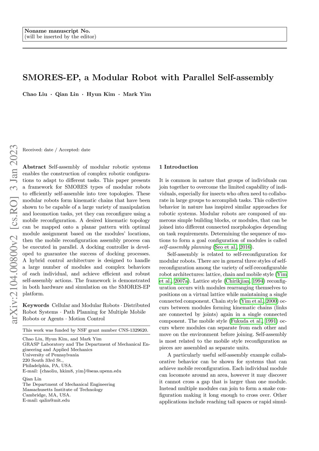 SMORES-EP, a Modular Robot with Parallel Self-assembly