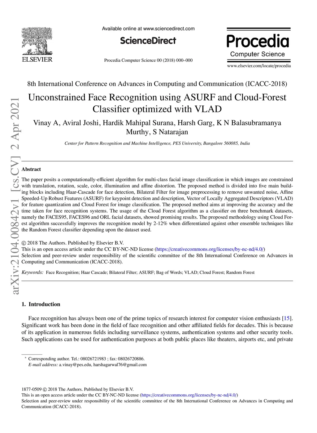 Unconstrained Face Recognition using ASURF and Cloud-Forest Classifier