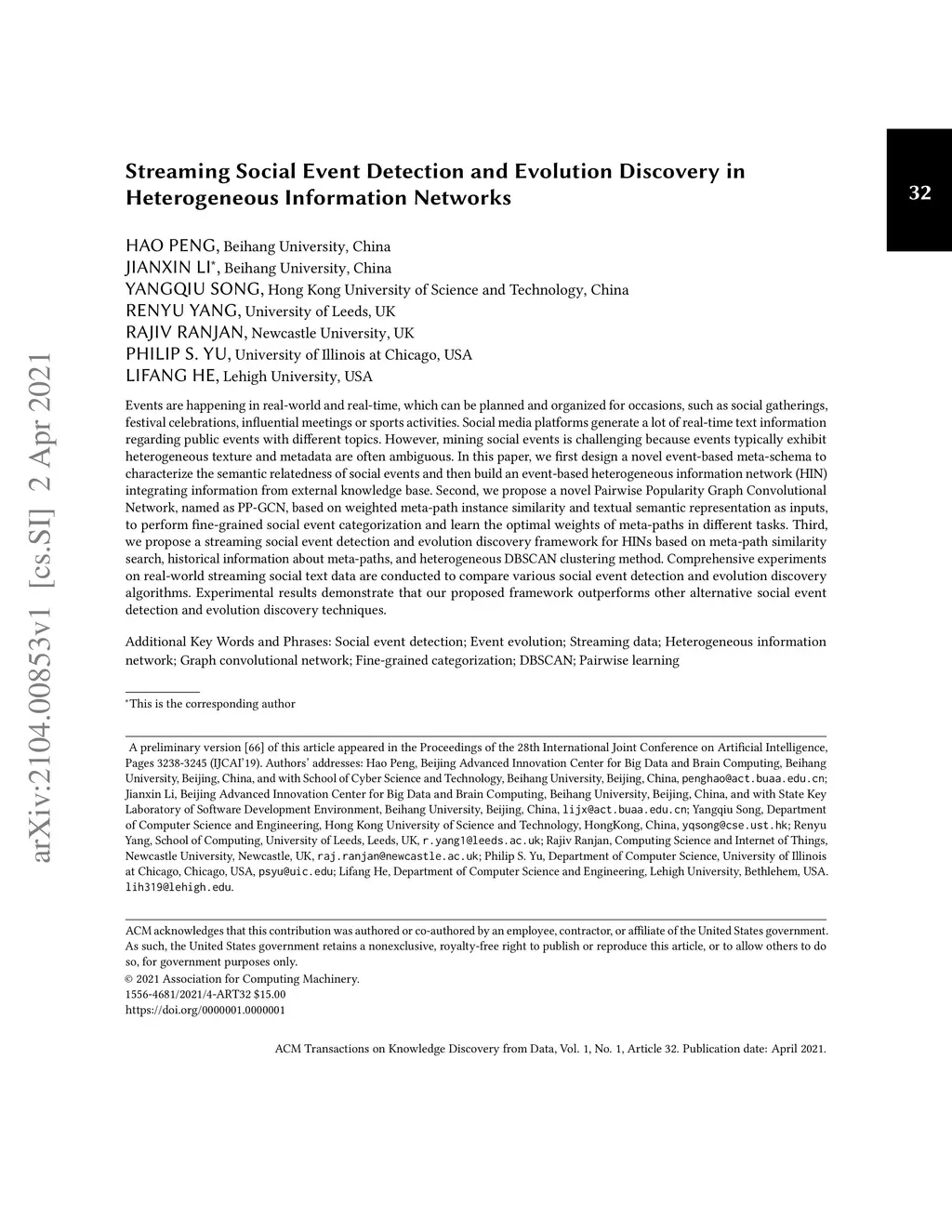 Streaming Social Event Detection and Evolution Discovery in