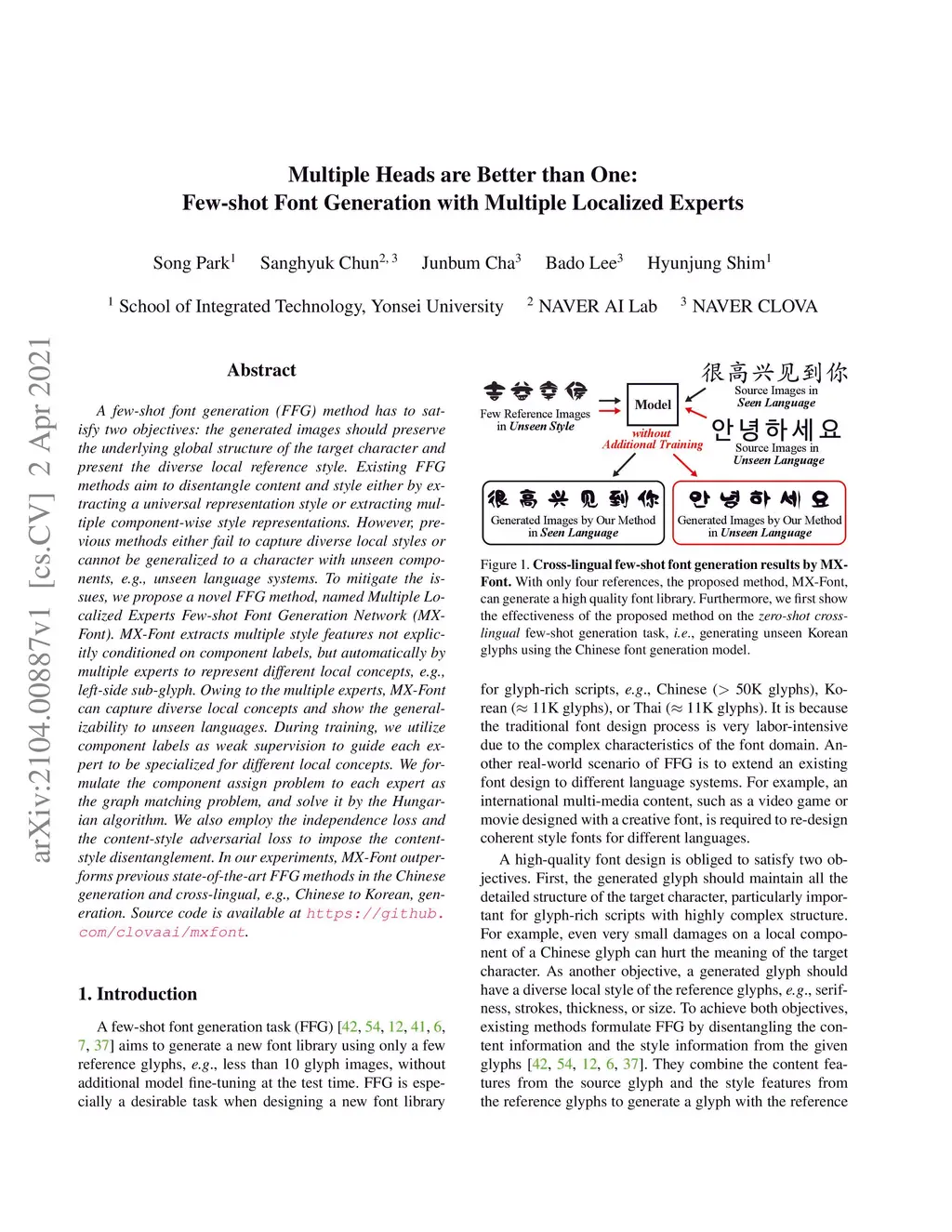 Multiple Heads are Better than One: Few-shot Font Generation with