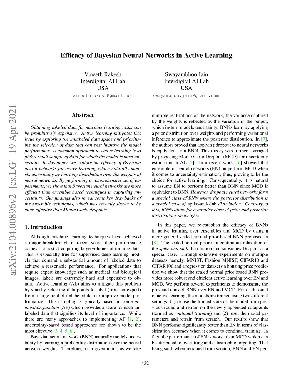 Efficacy of Bayesian Neural Networks in Active Learning