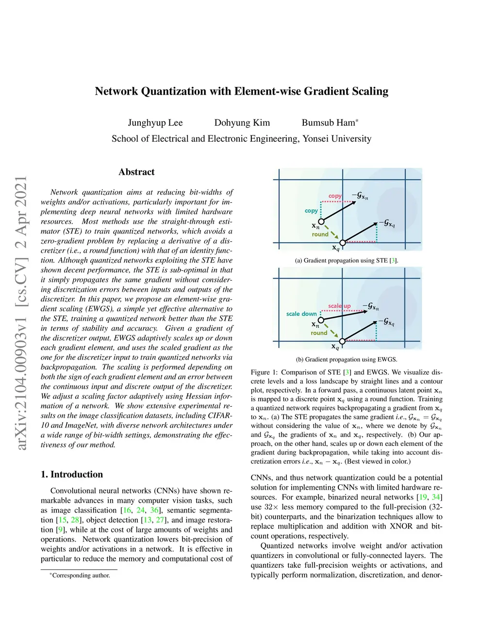 Network Quantization with Element-wise Gradient Scaling