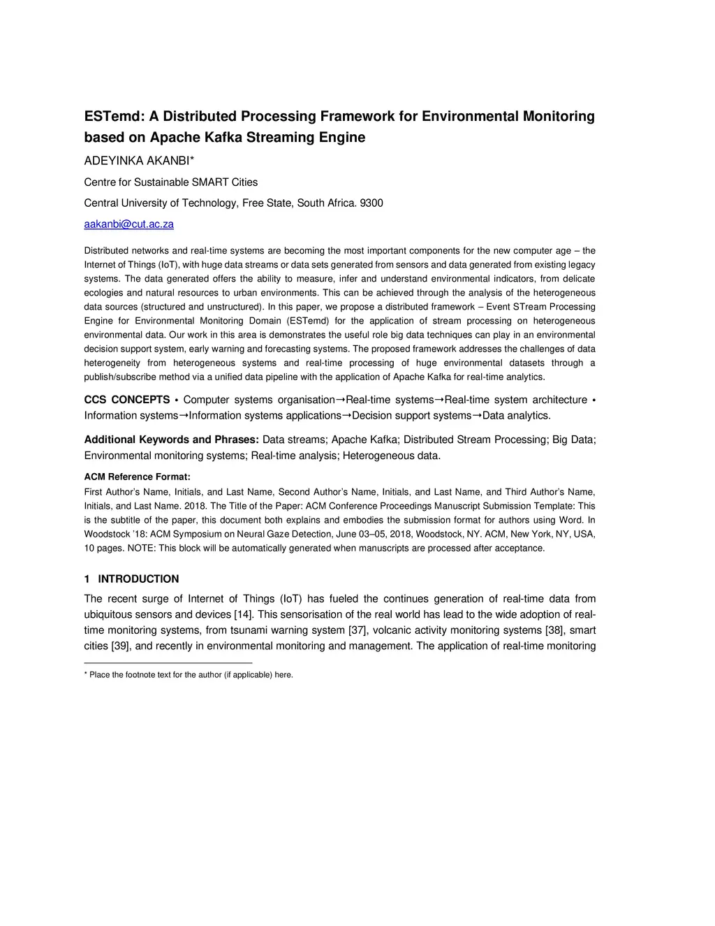 ESTemd: A Distributed Processing Framework for Environmental Monitoring