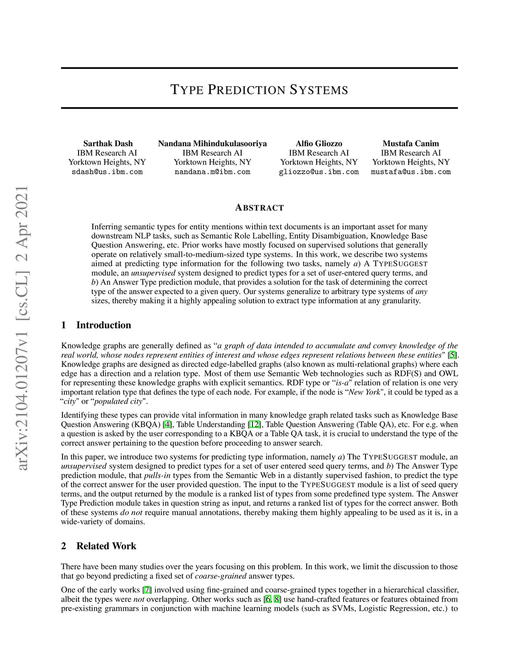 Inferring semantic types for entity mentions within text documents is an important asset for many downstream NLP tasks, such as Semantic Role Labelling, Entity Disambiguation, Knowledge Base Question Answering, etc. Prior works have mostly focused on supervised solutions that generally operate on relatively small-to-medium-sized type systems. In this work, we describe two systems aimed at predicting type information for the following two tasks, namely, a TypeSuggest module, an unsupervised system designed to predict types for a set of user-entered query terms, and an Answer Type prediction module, that provides a solution for the task of determining the correct type of the answer expected to a given query. Our systems generalize to arbitrary type systems of any sizes, thereby making it a highly appealing solution to extract type information at any granularity.
